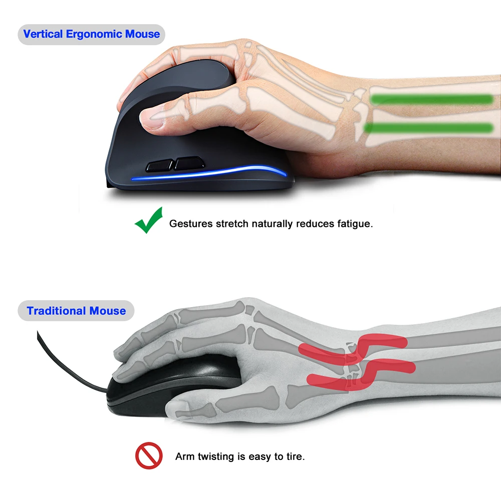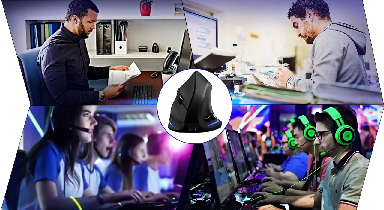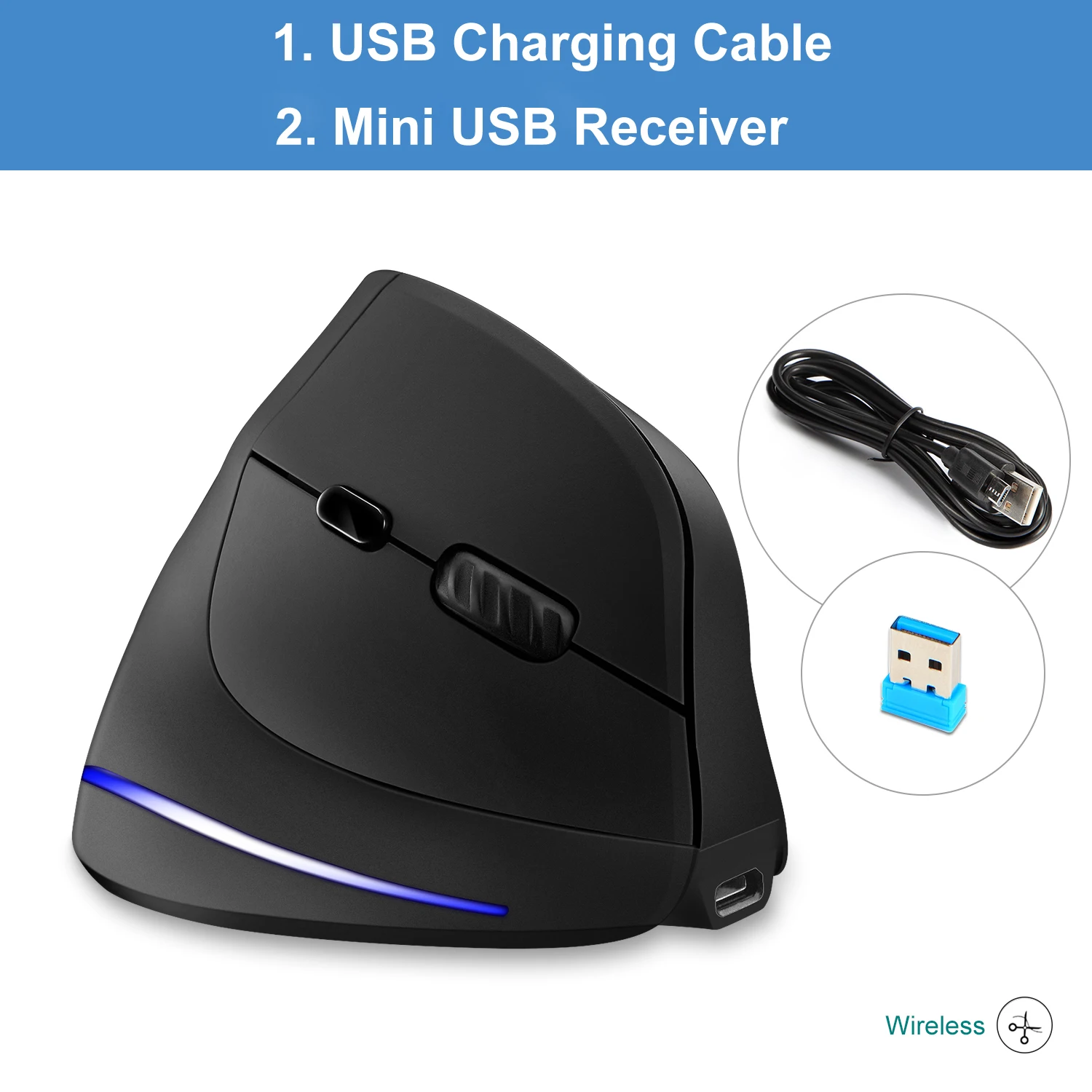 Lefon F35 Wireless Vertical Mouse 2.4G Rechargeable Ergonomic Optical Mouse 2400 DPI Gaming Mice for Computer Laptop PC Mac IOS