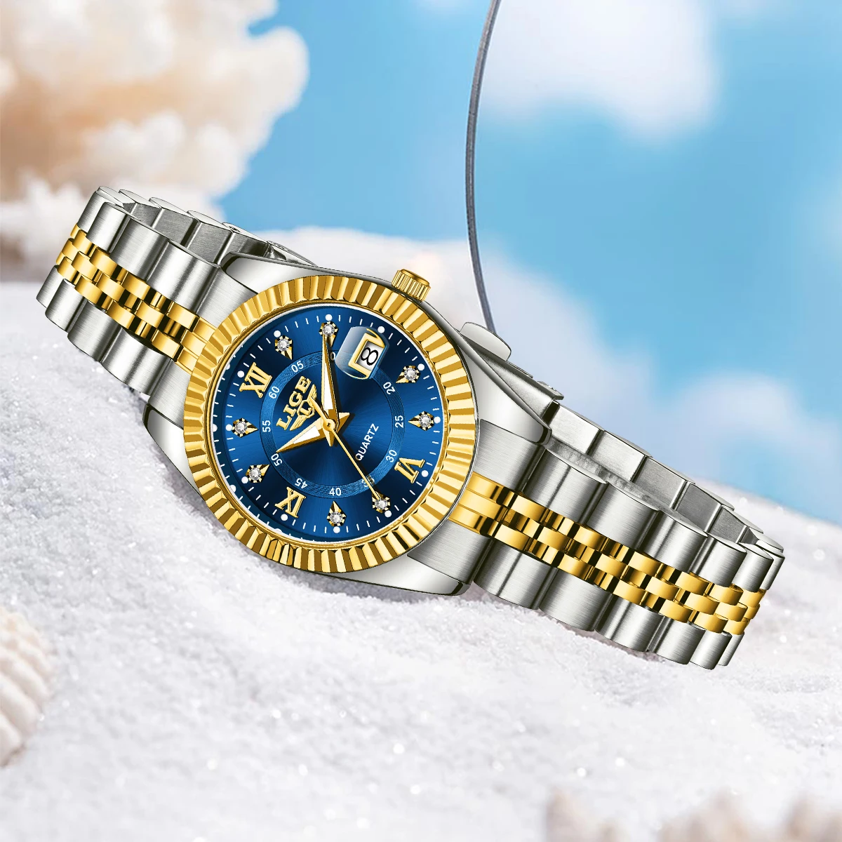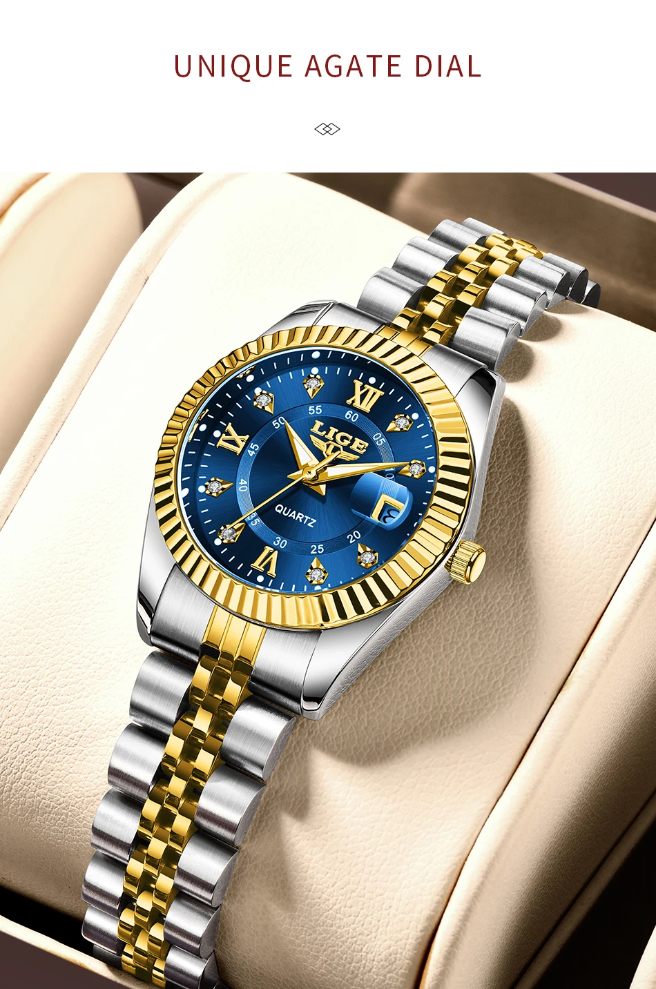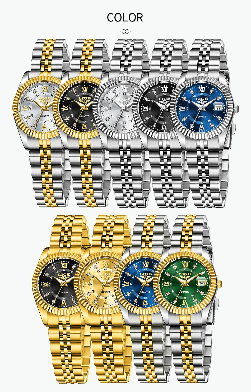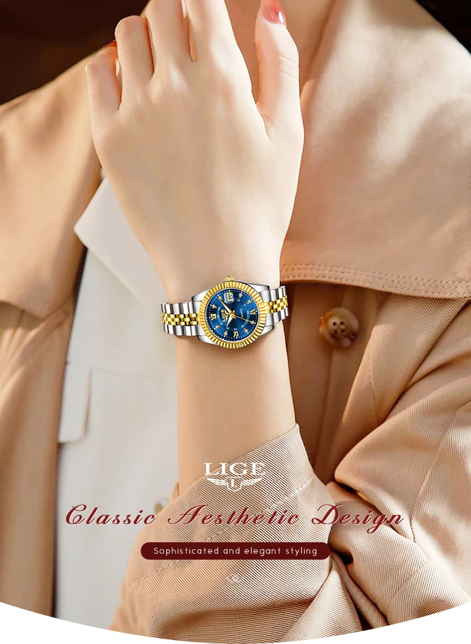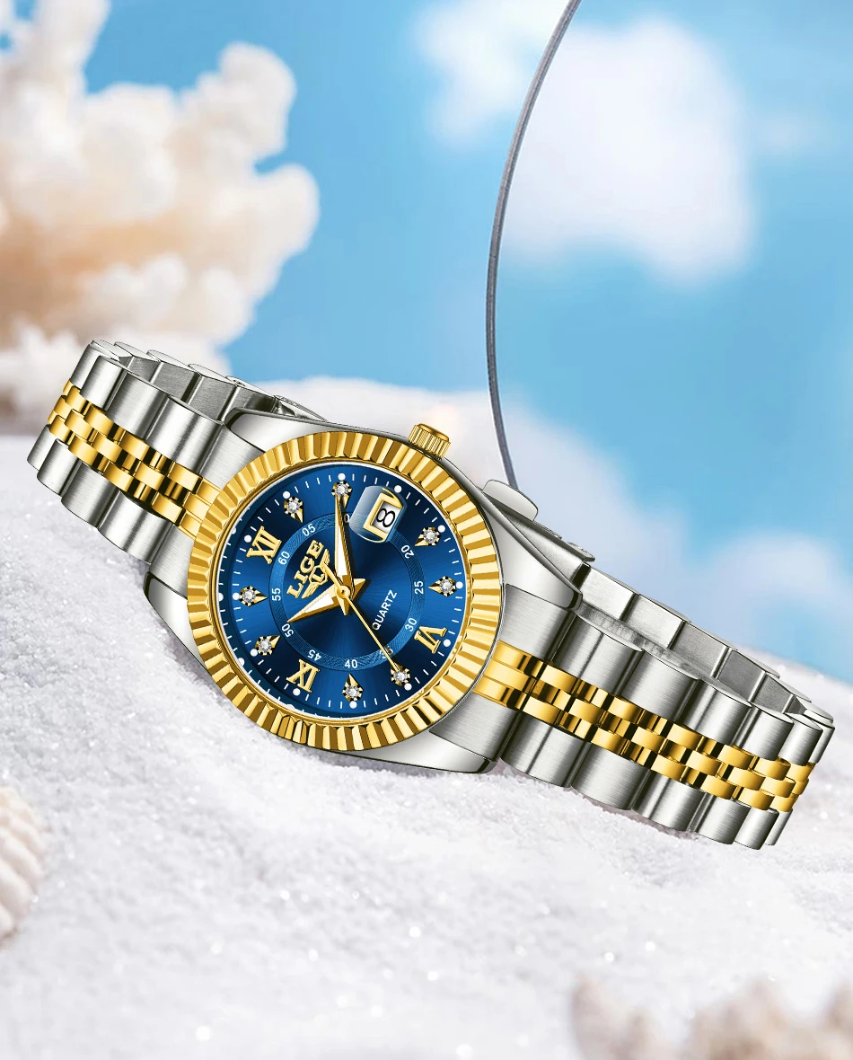LIGE Fashion Woman Watch Stainless Steel Waterproof Auto Date Elegant Ladies Wristwatch Luxury Original Quartz Watch for Women