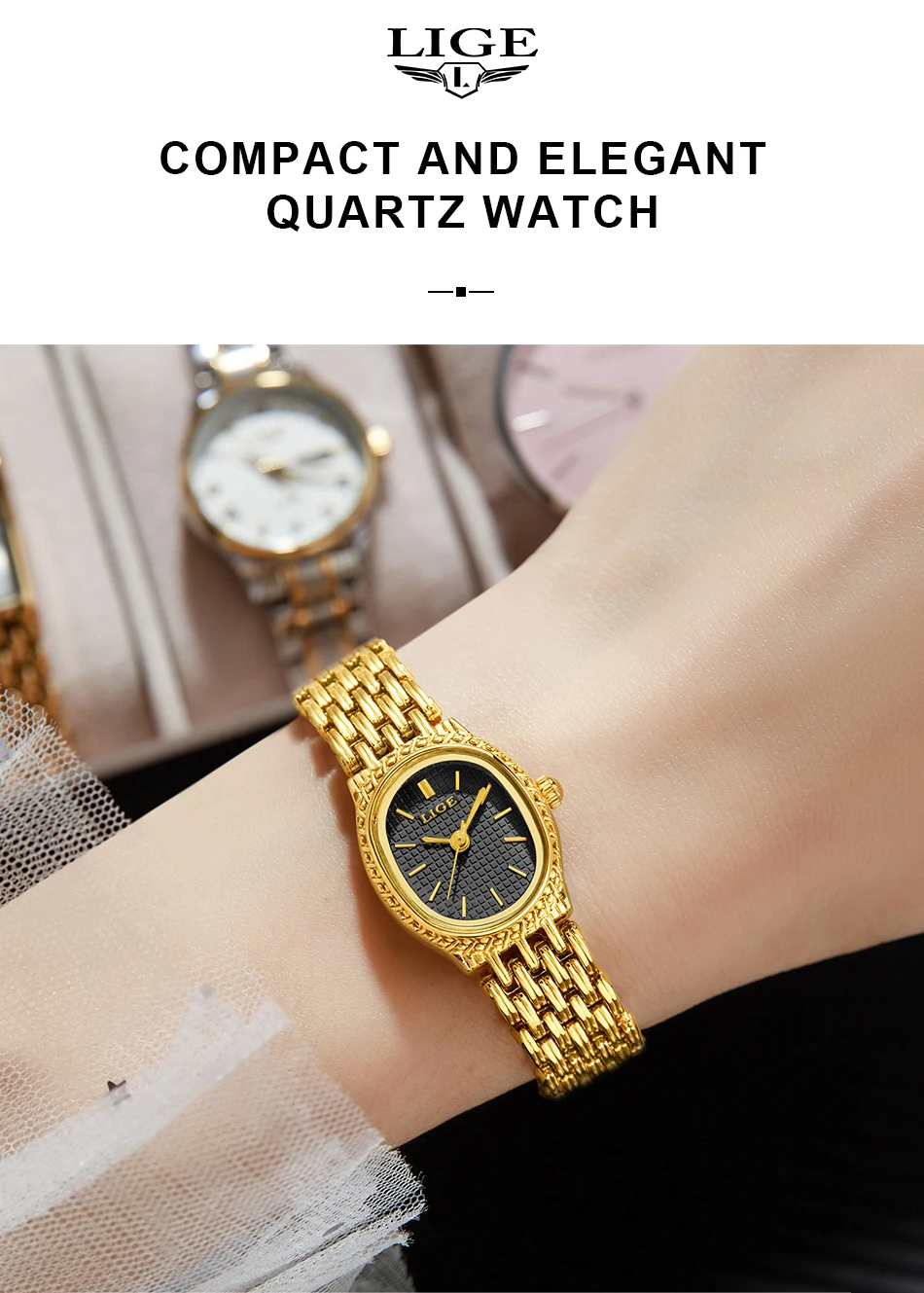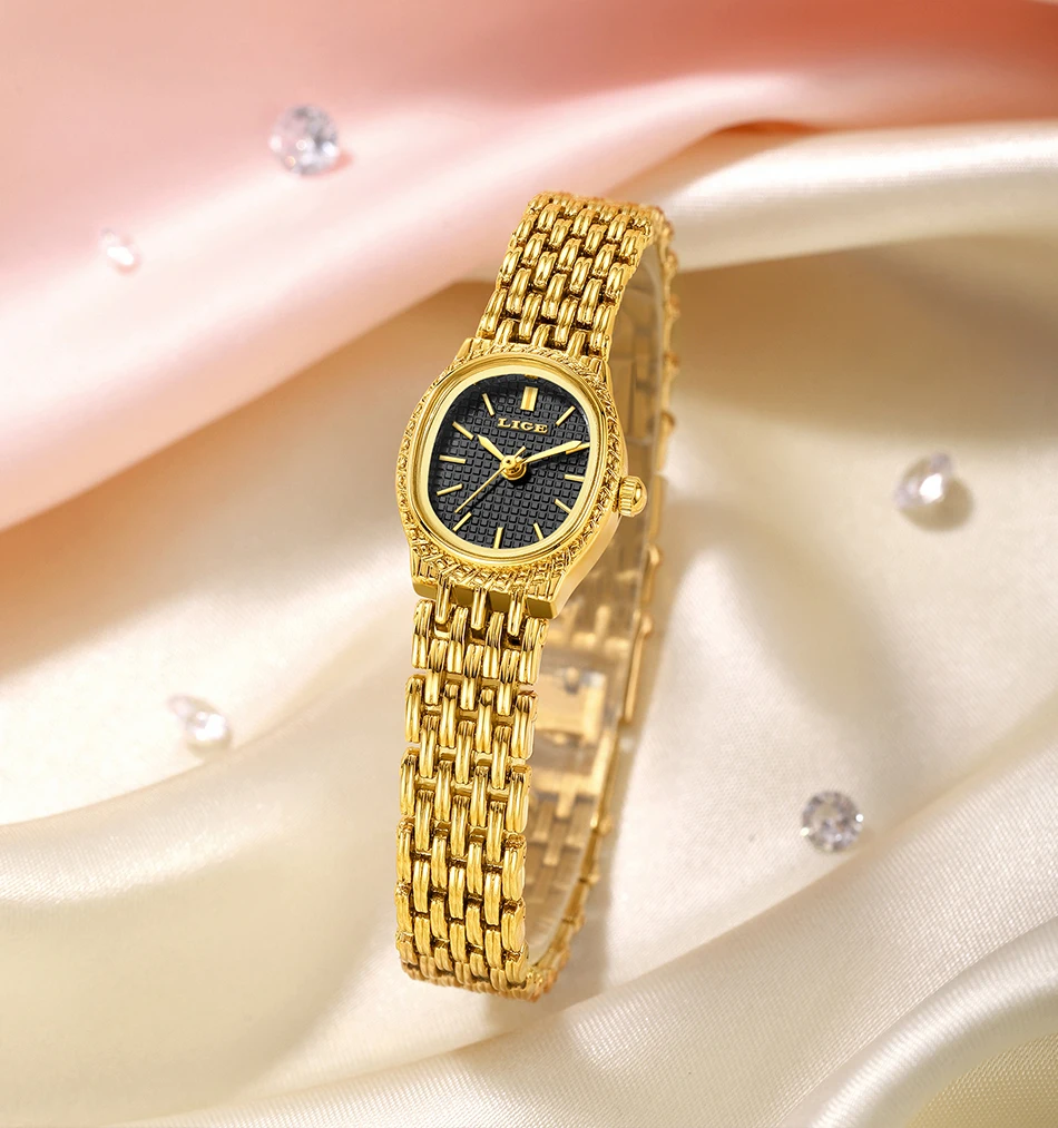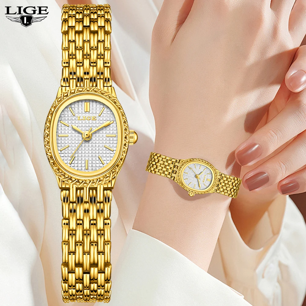 LIGE Golden Women Wristwatch Small Dial Ladies Gold Watch Bracelet Jewelry Quartz Lady Watch Compact Stylish Luxury Women Watch