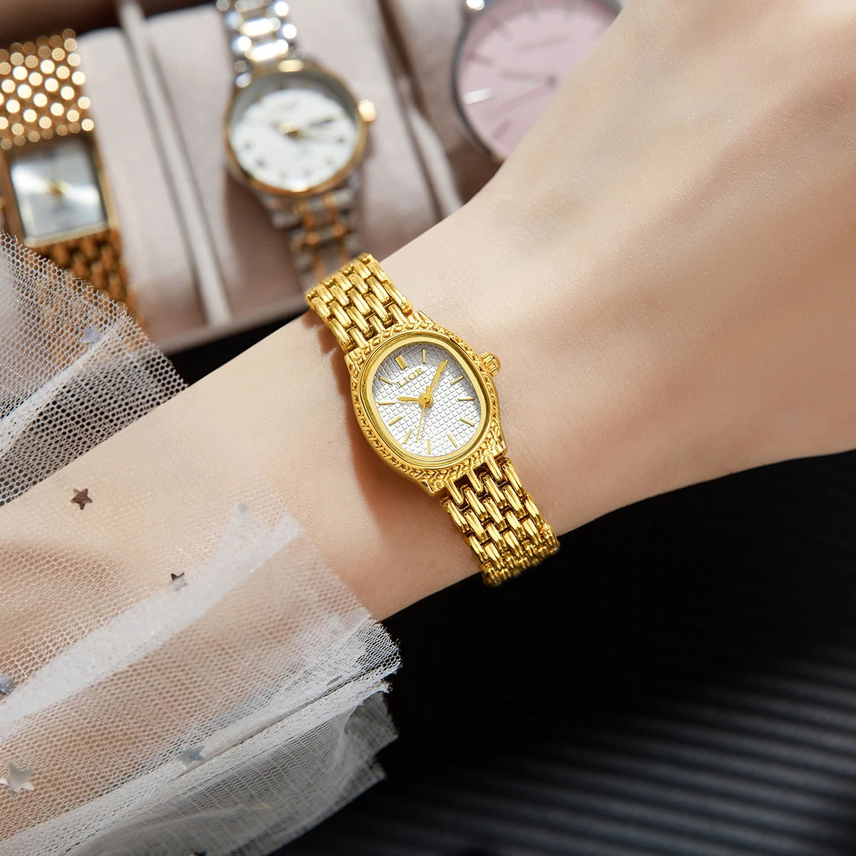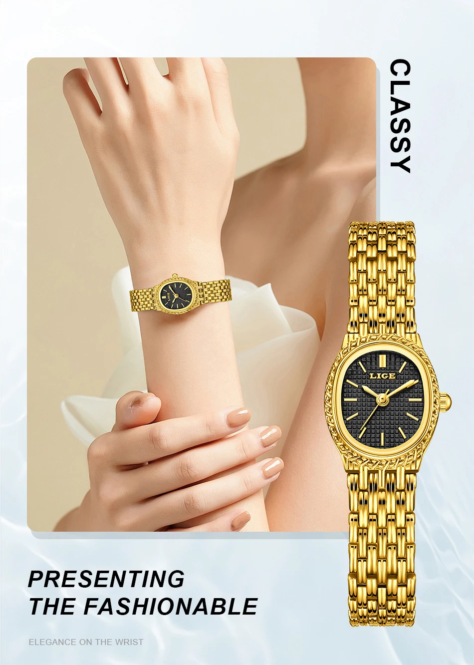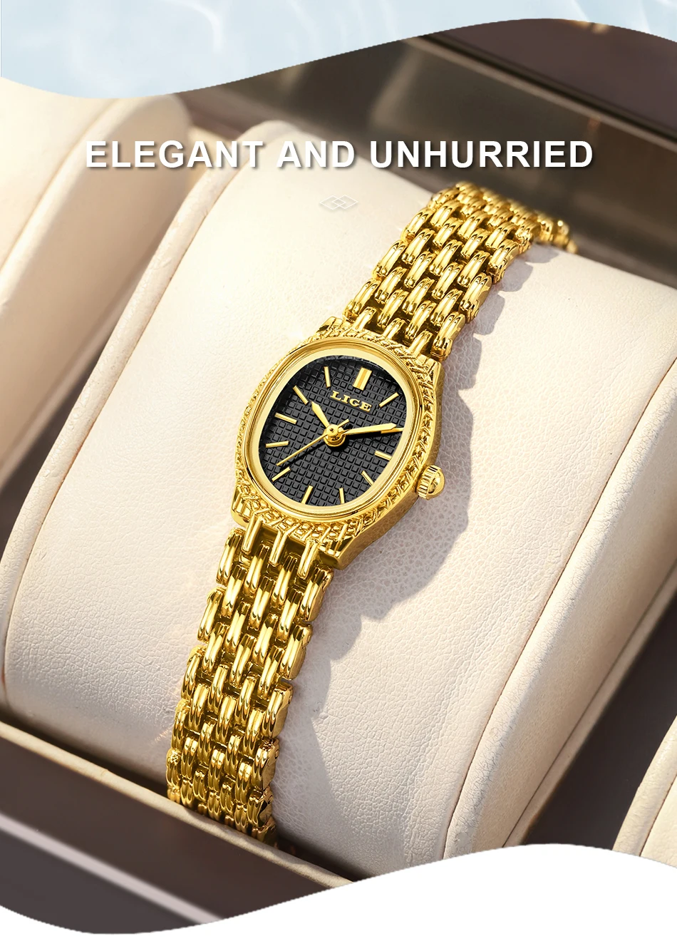 LIGE Golden Women Wristwatch Small Dial Ladies Gold Watch Bracelet Jewelry Quartz Lady Watch Compact Stylish Luxury Women Watch