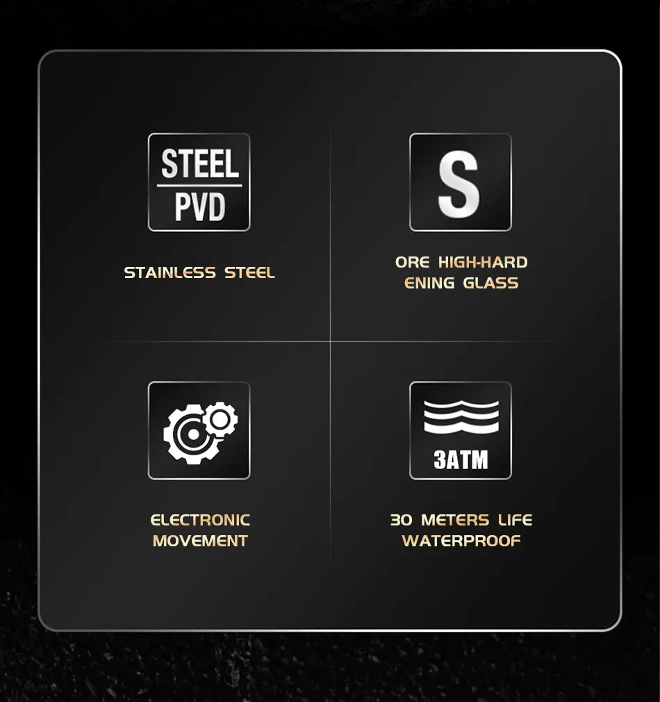 - Feature: Stop Watch,Shock Resistant,Led Display,Repeater,Luminous,Auto Date,Chronograph,Complete Calendar,DIVER,Water-Resistance,Alarm,swim,Week Display,Luminous Hands