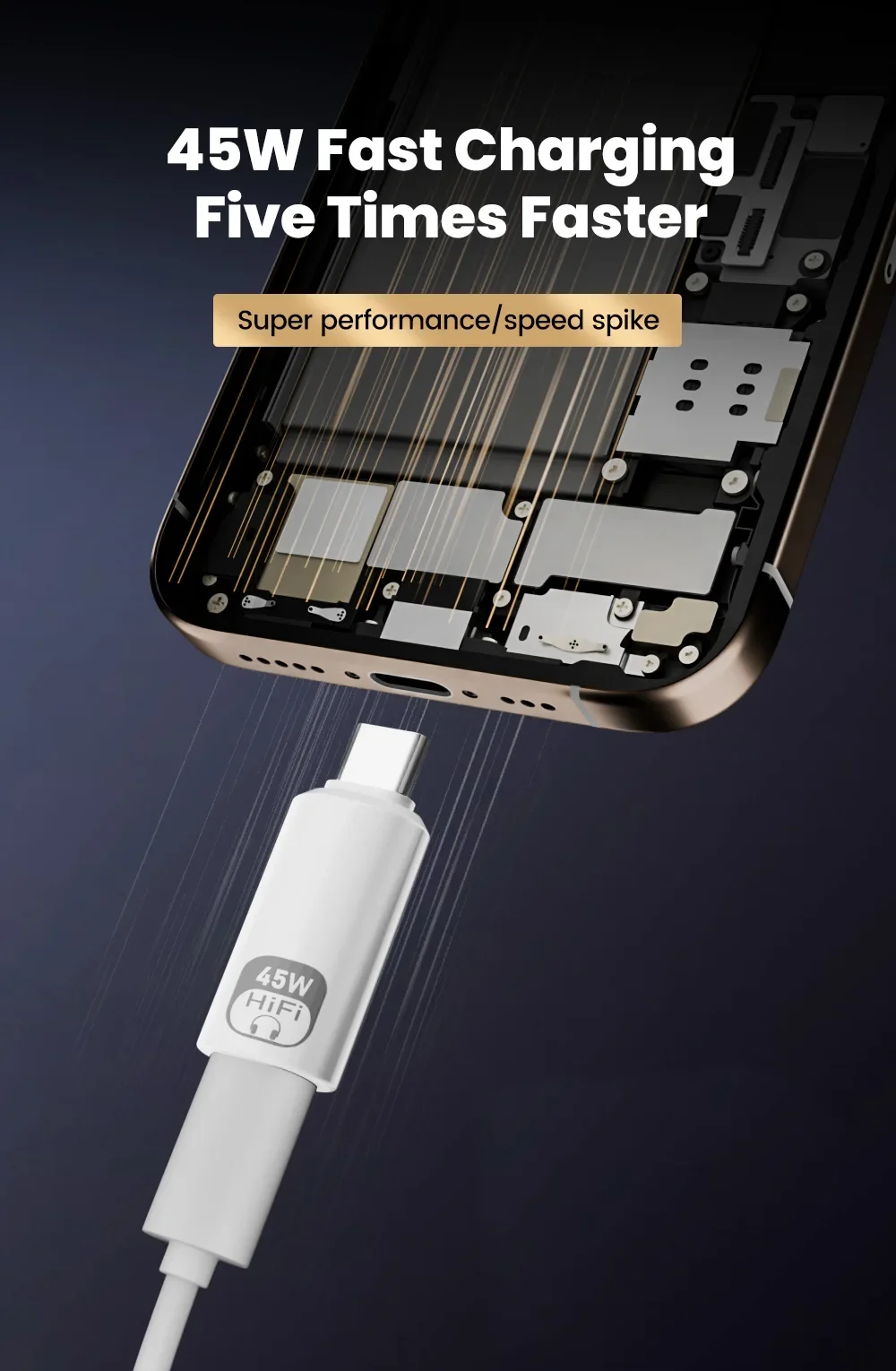 Function: PD45w fast charging/HiFi sound quality listening/calling/headphones/remote control/recording/data transfer 480Mbps/Car Play
