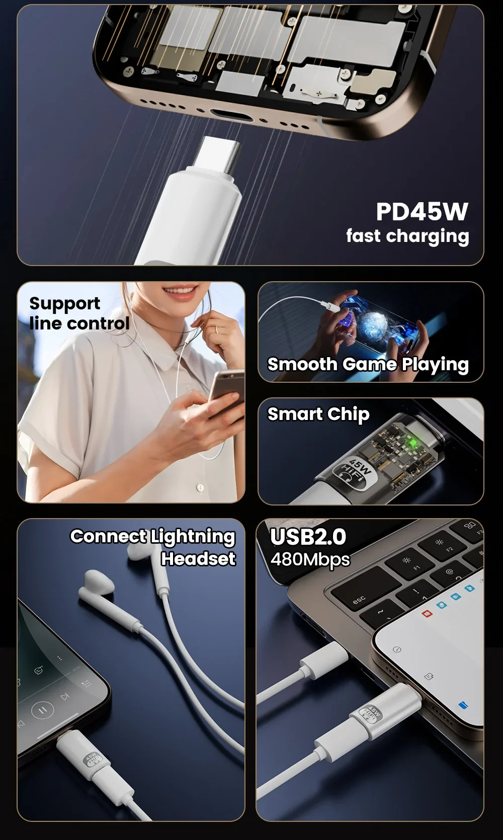 Product Name: Fully functional 3-in-1 Lighting to Type-C adapter