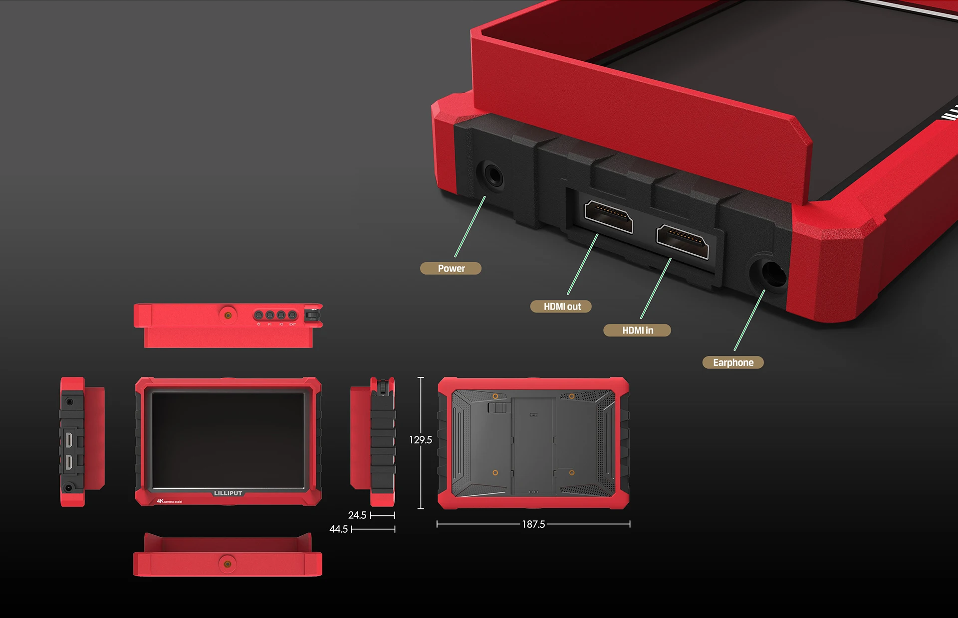 F1&F2 user-definable buttons to custom auxiliary functions as shortcut, such as peaking, underscan and checkfield. Use the arrow