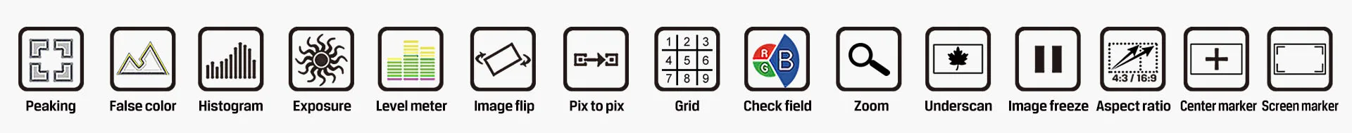 Plenty of auxiliary functions for taking photos and making movies, such as peaking, false color and audio level meter.