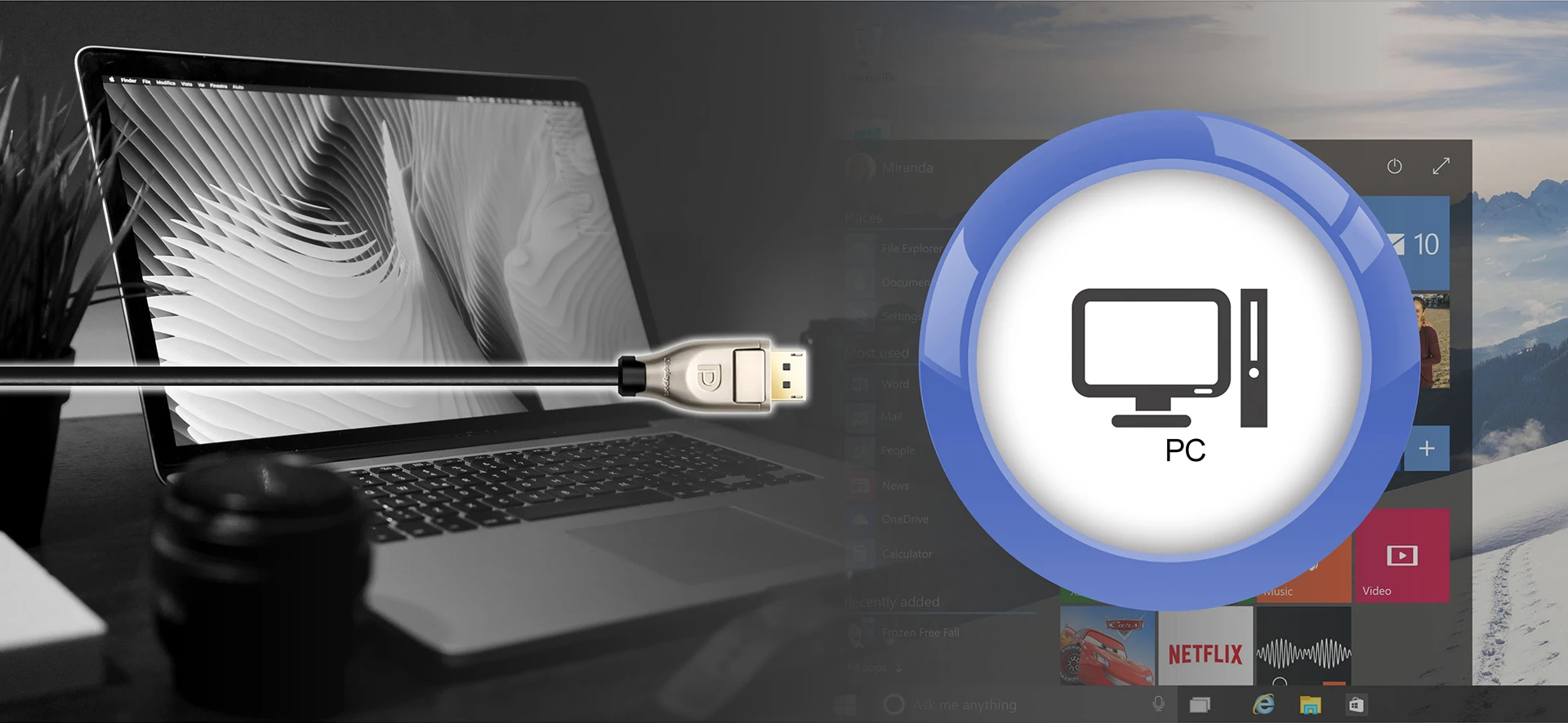 computer or other device with displayport interface for video editing or post production.