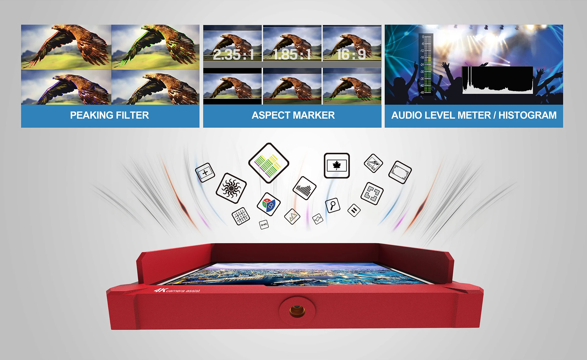 A5 matches with world-famous 4K / FHD camera brands, to assist cameraman in better photography experience