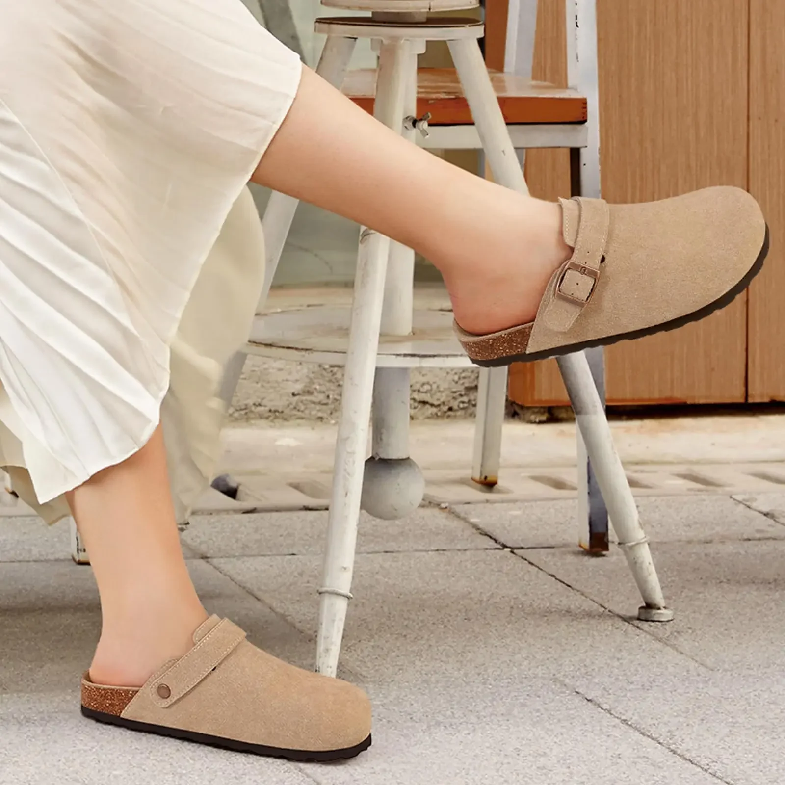 - Ultimate Comfort: Soft cork footbed with a deep heel cup design perfectly fits the foot curve while providing cushioning; Arch support relieves foot pressure, ensuring maximum comfort; High-quality suede material, with good breathability, keeps your feet dry all the time