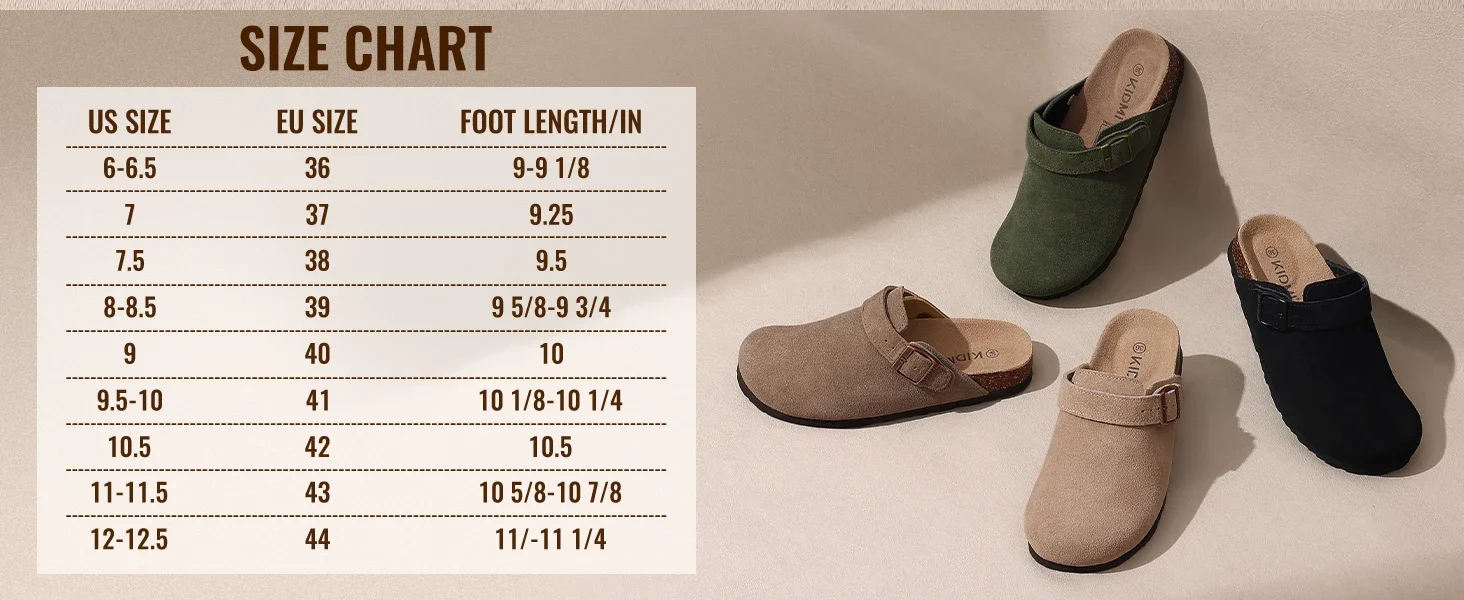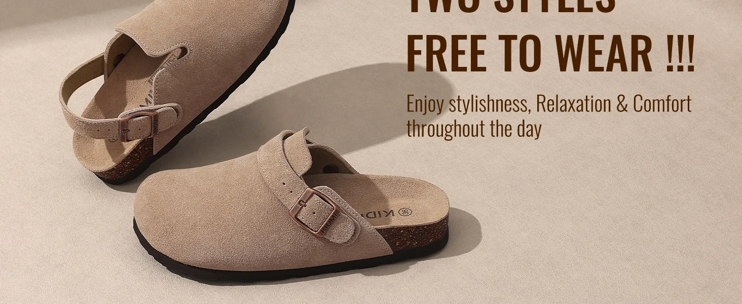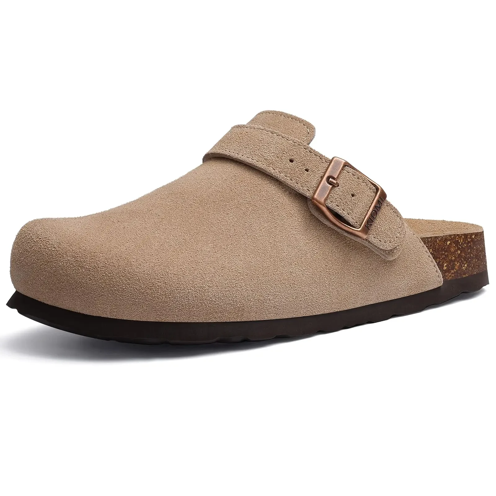 • Ultimate Comfort: Soft cork footbed with a deep heel cup design perfectly fits the foot curve while providing cushioning; Arch support relieves foot pressure, ensuring maximum comfort; High-quality suede material, with good breathability, keeps your feet dry all the time