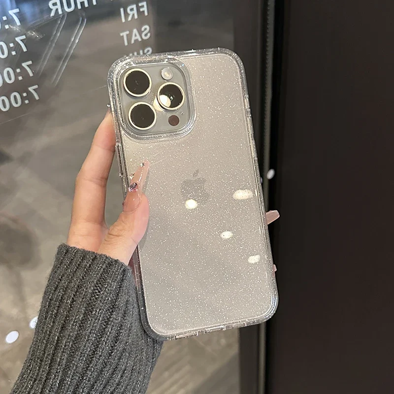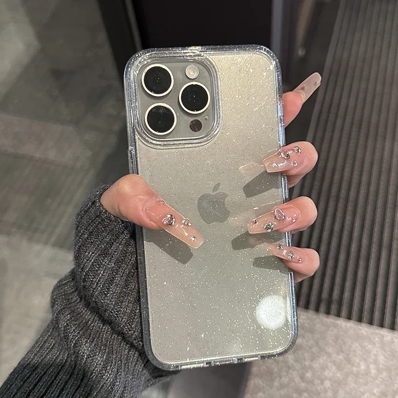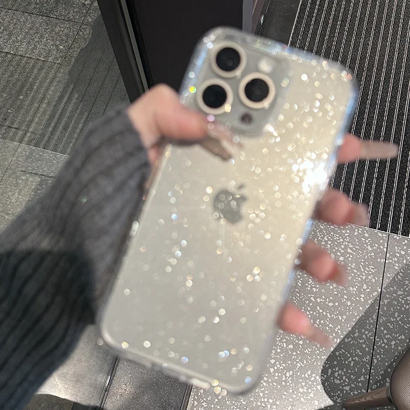 Luxury Bling Glitter Silicone Clear Case For iPhone 17 Air 16 15 14 Plus 13 11 12 Mini Pro Max Transparent Soft TPU Cover Funda
