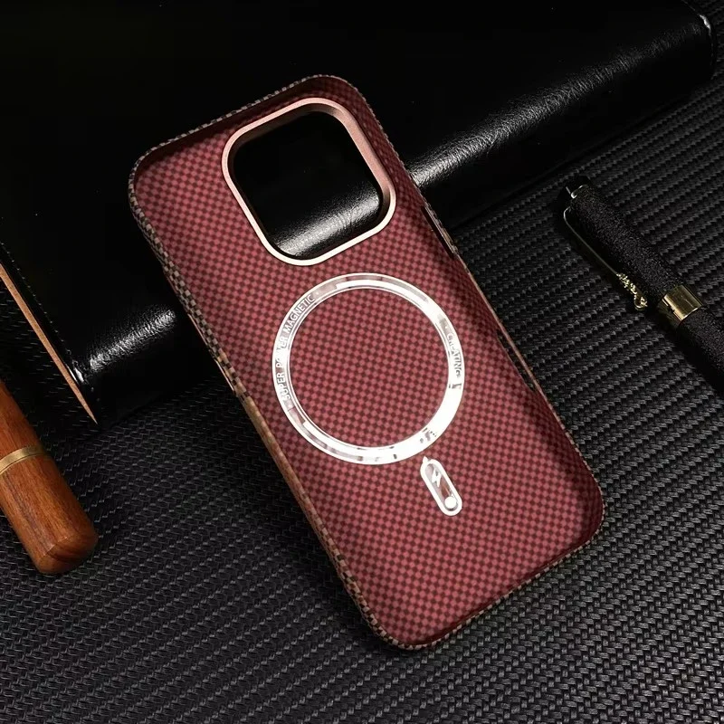 Luxury Carbon Fiber Relief Magsafe Phone Case For iPhone 17 16 15 14 13 12 Pro Max Metal Lens Wireless Charging Shockproof Cover