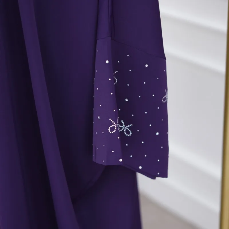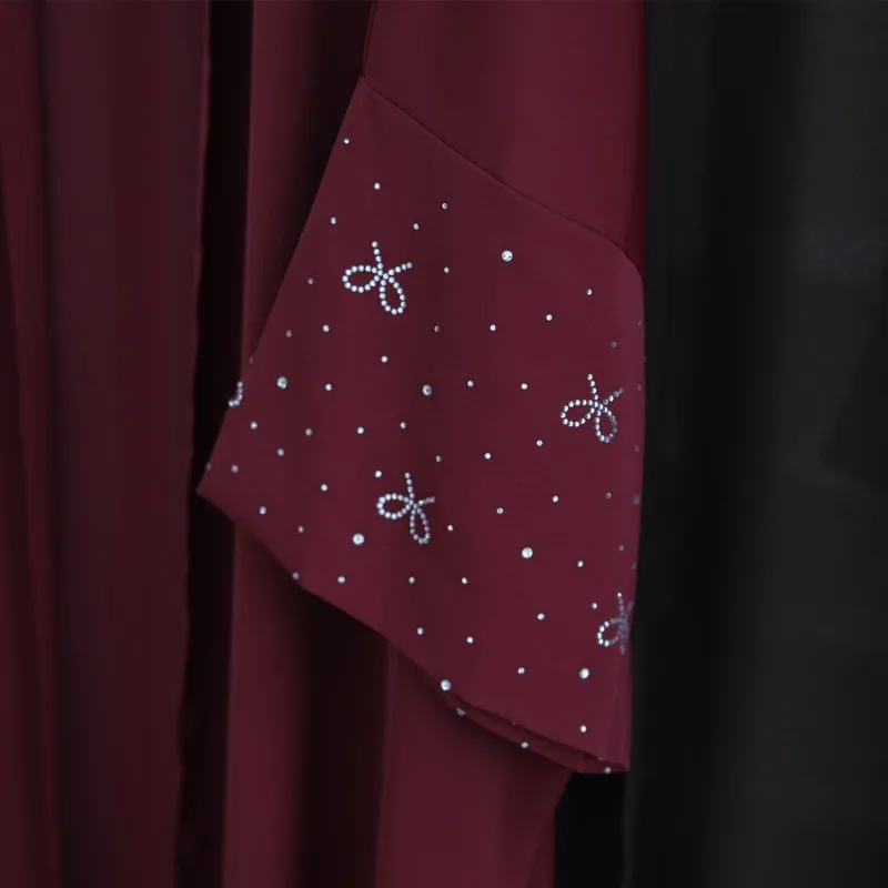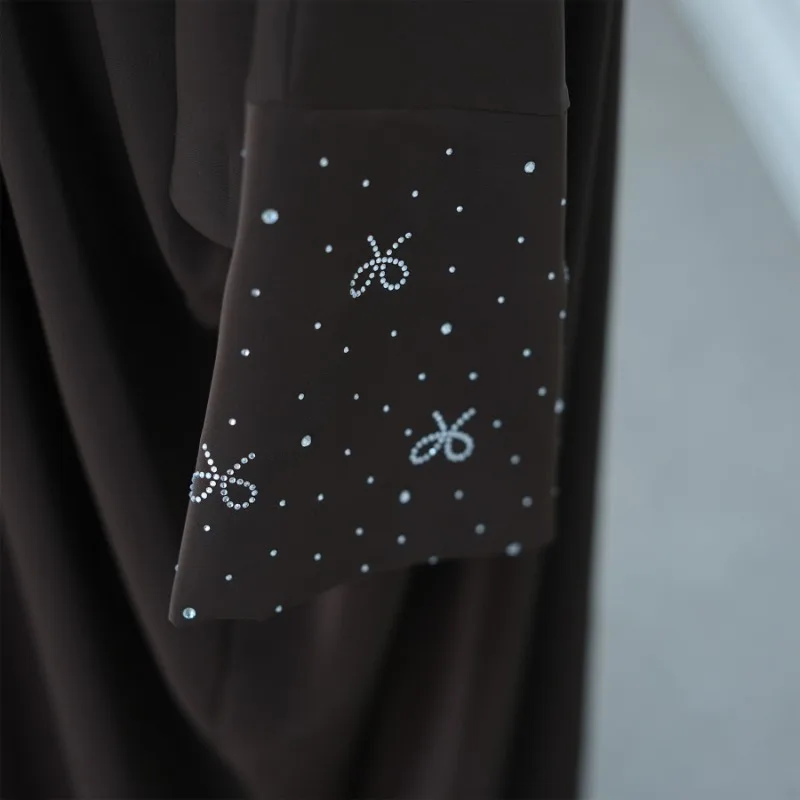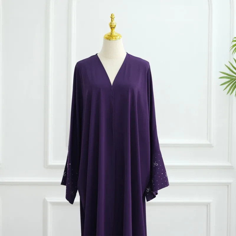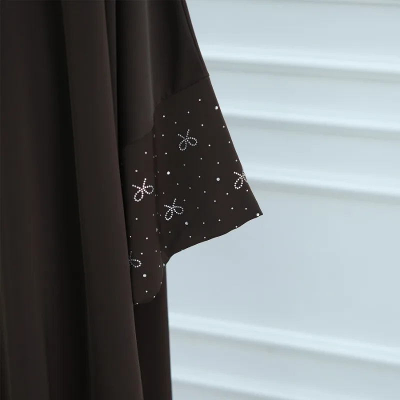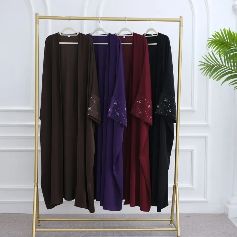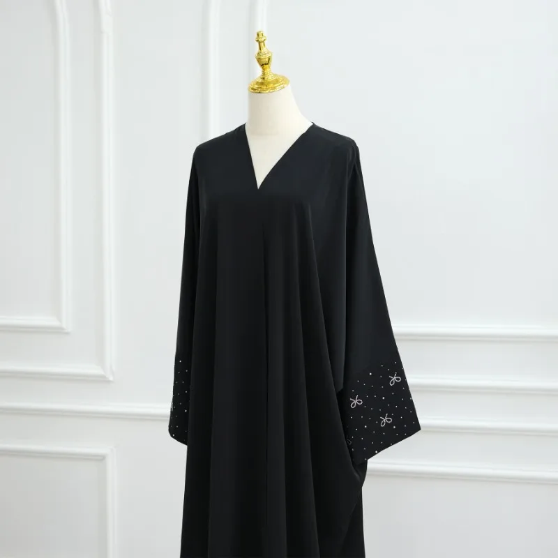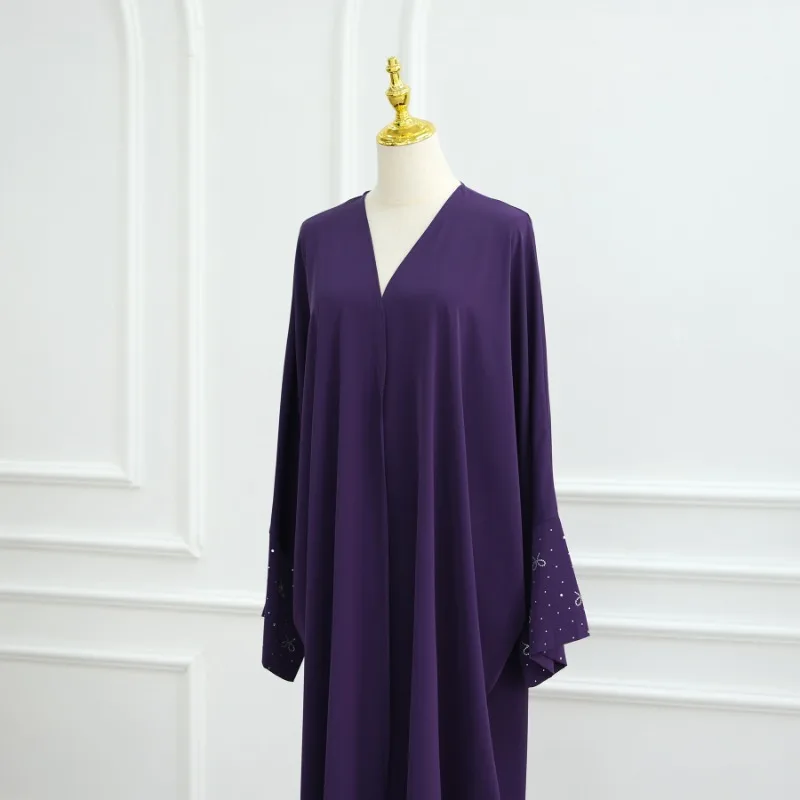 Luxury Dubai Abaya with Beaded Bow Modest Dress for Muslim Women Elegant Open Front Cover Cardigan Fashion Plain Turkey Outfit