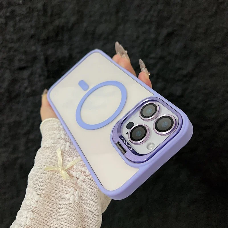 Luxury Magnetic Shockproof Phone Case For iPhone 15 14 13 12 11 16 17 Pro Max Plus 16E Funda Stand Glass Lens Protection Cover