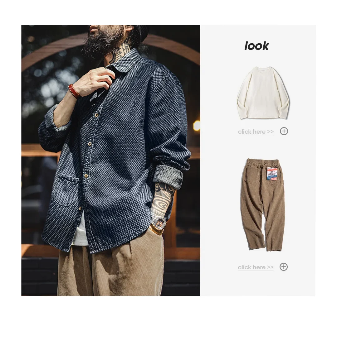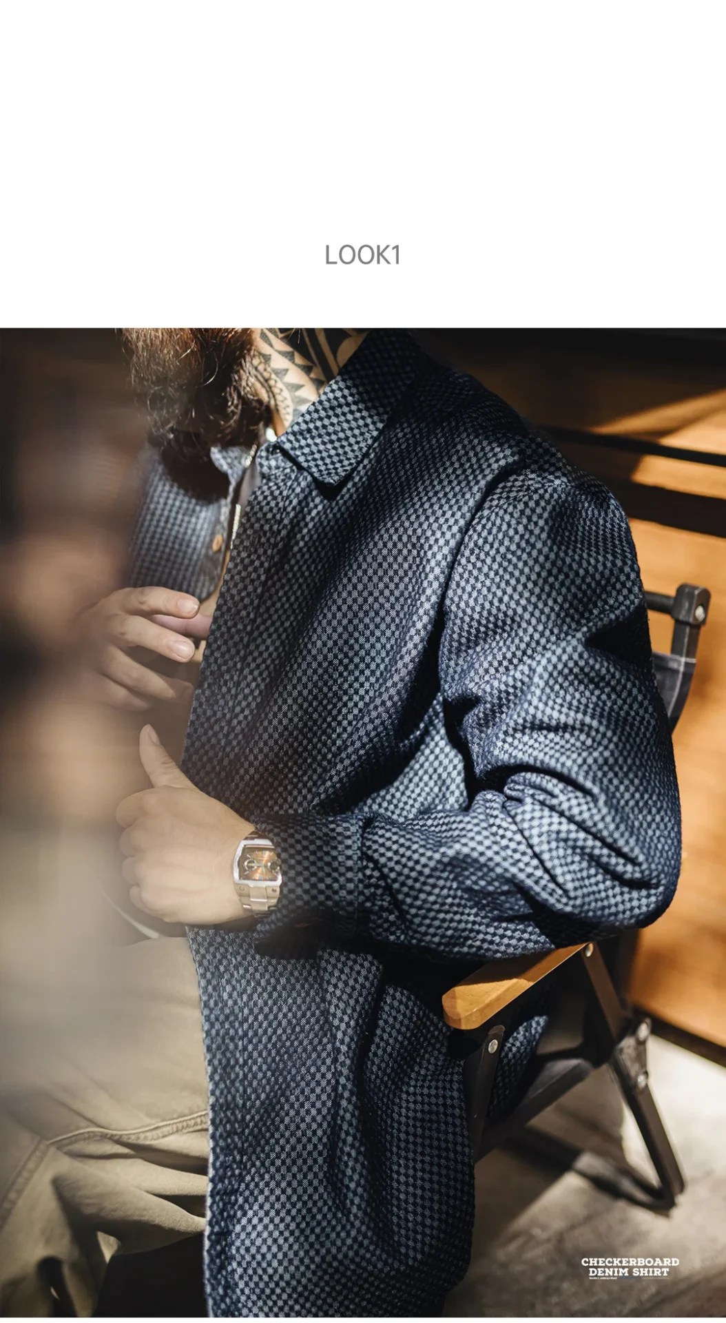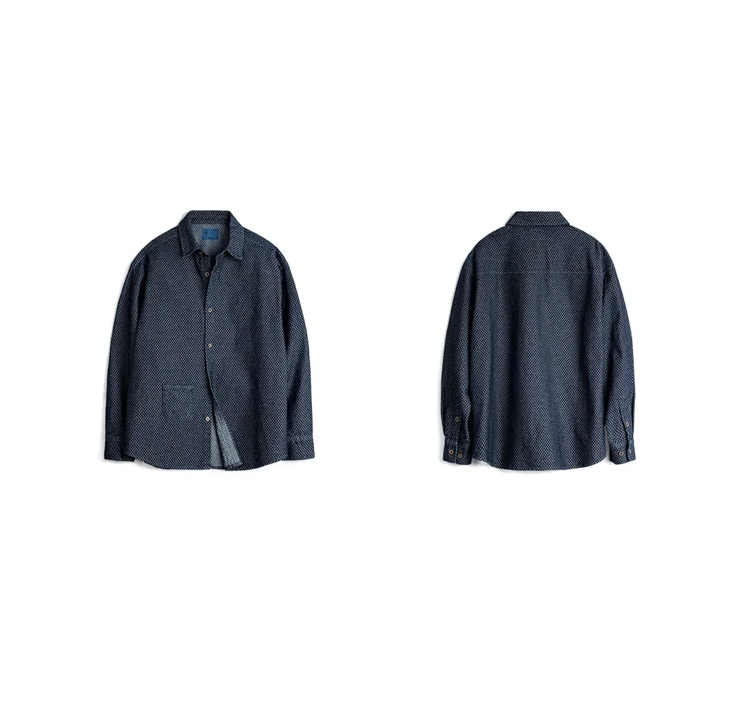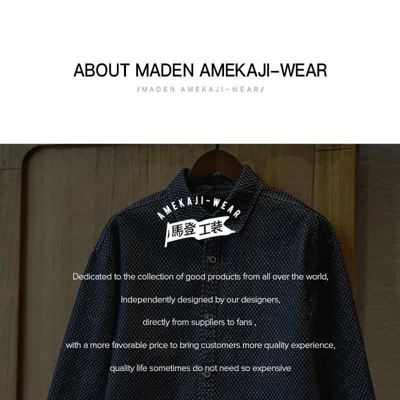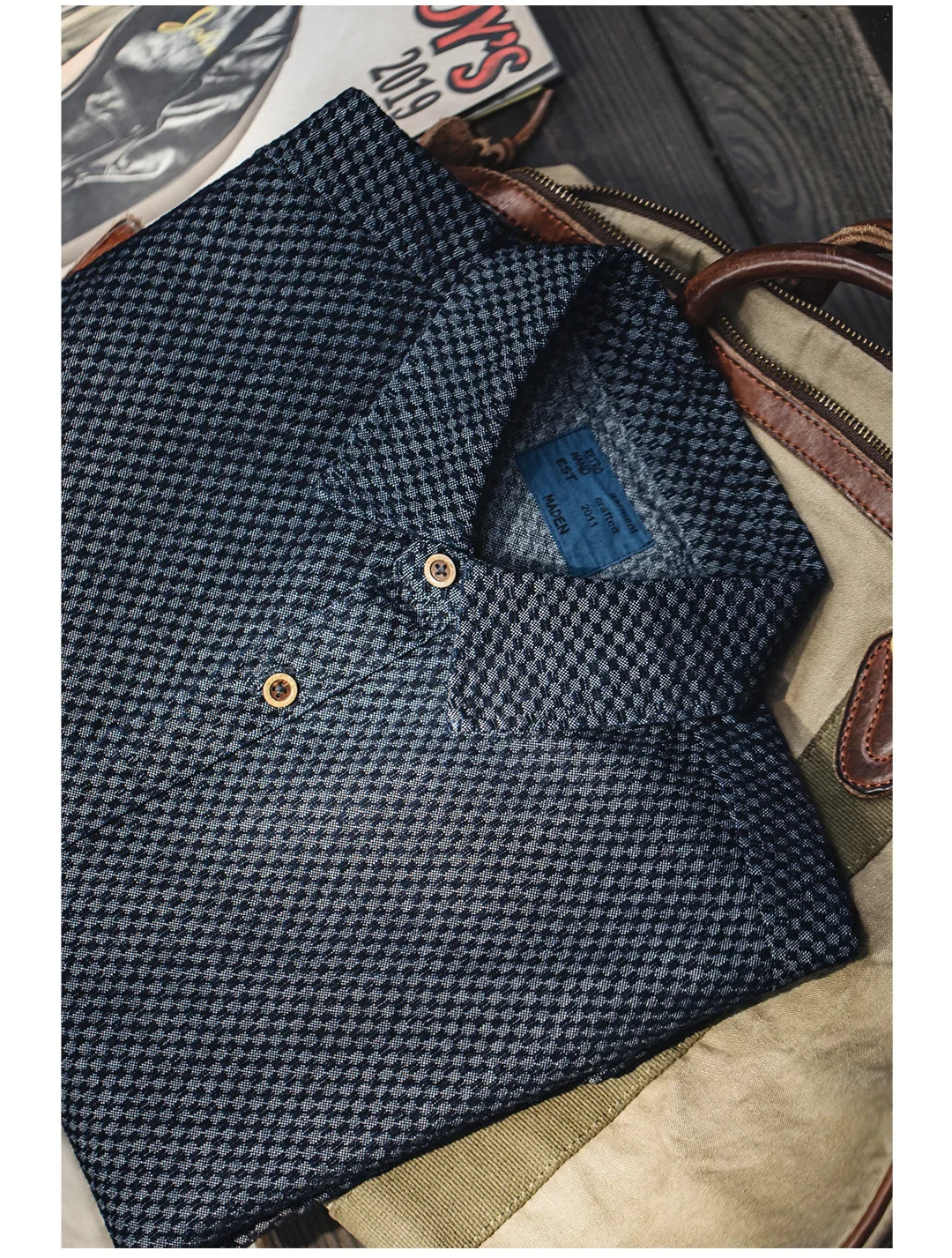 Maden Retro Checkered Long-sleeved Denim Shirt Loose Lapel Single-breasted Jacket for Men Spring and Fall Versatile Outerwear