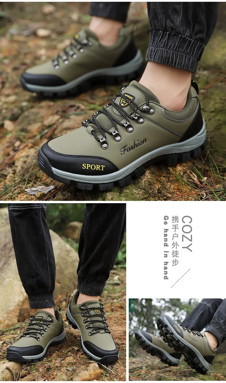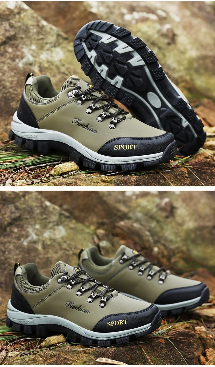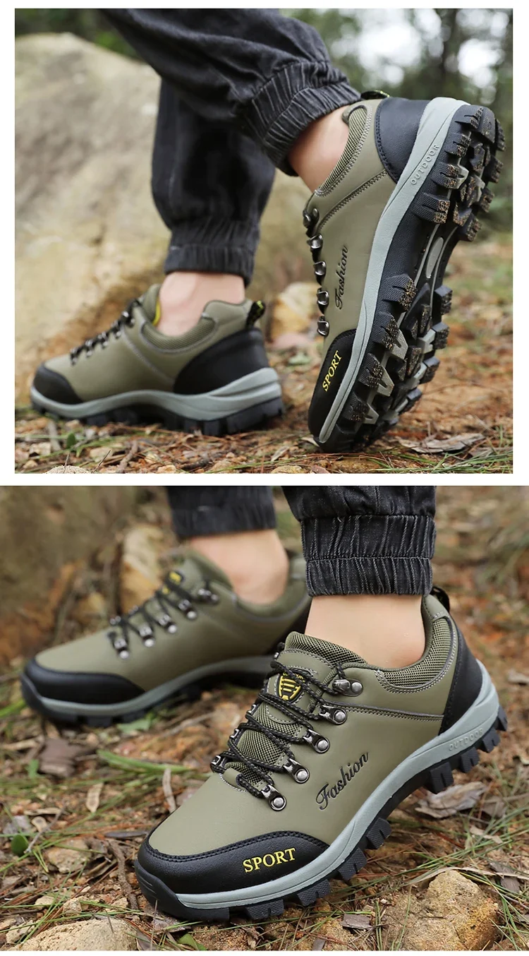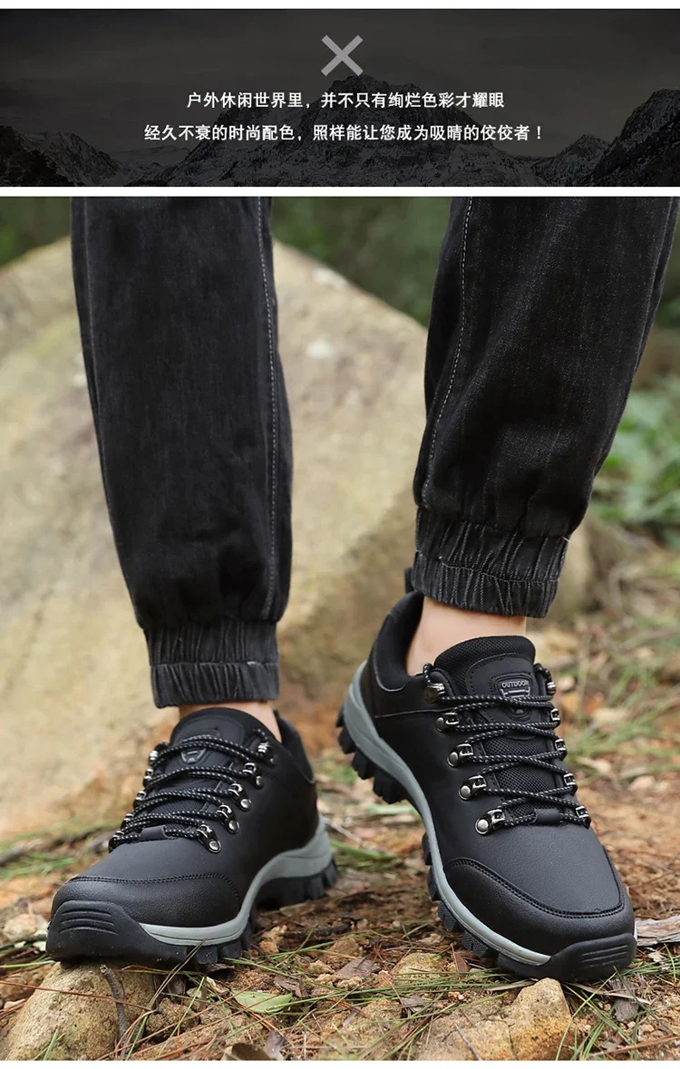 Men outdoor hiking shoes mountaineering sports shoes lace-up hiking outdoor comfortable non-slip thick-soled mountain shoes 46