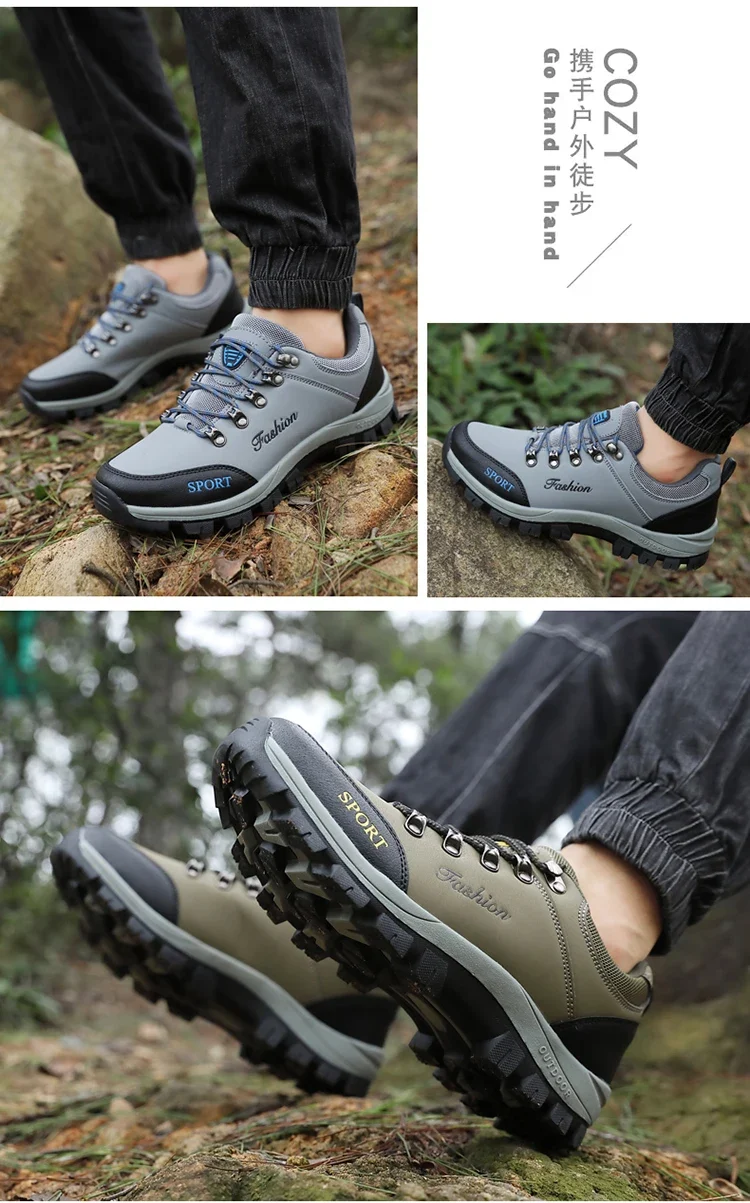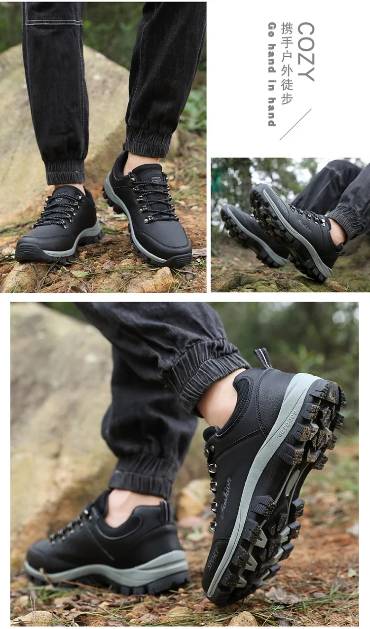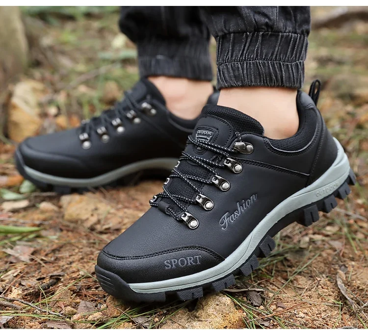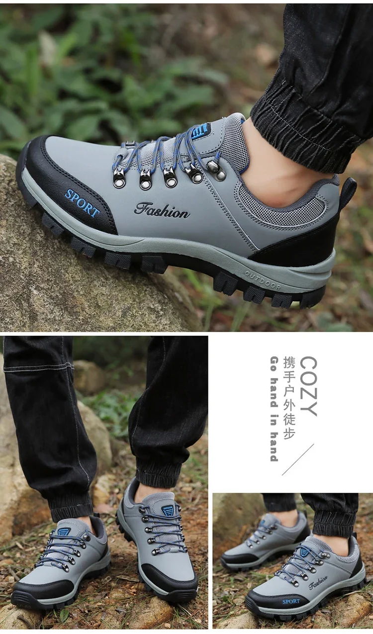 Men outdoor hiking shoes mountaineering sports shoes lace-up hiking outdoor comfortable non-slip thick-soled mountain shoes 46