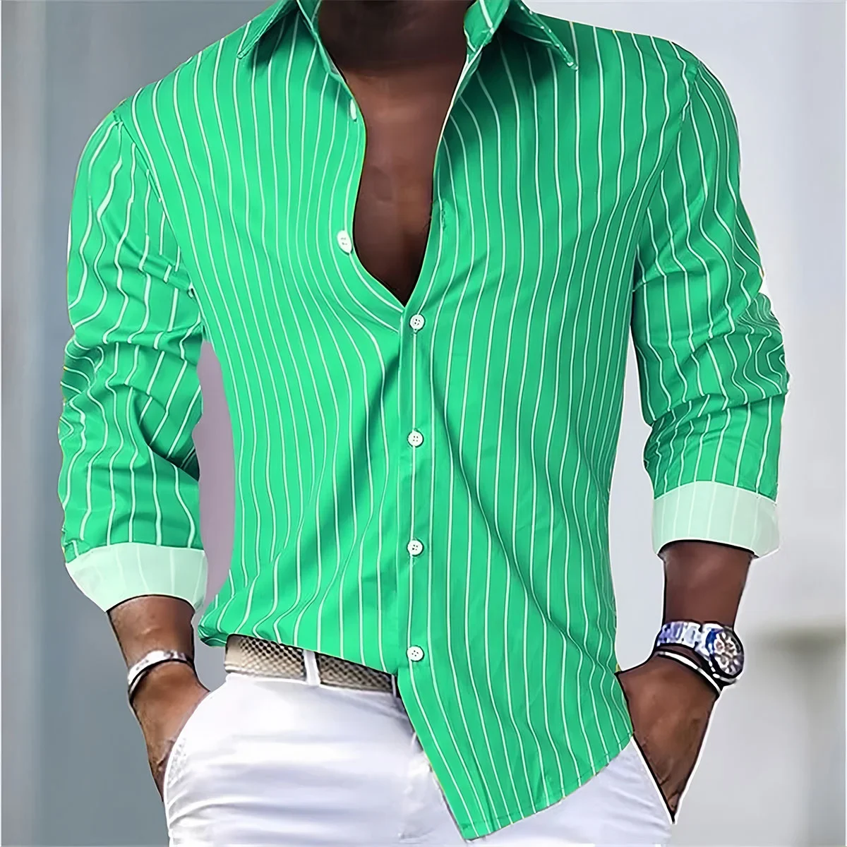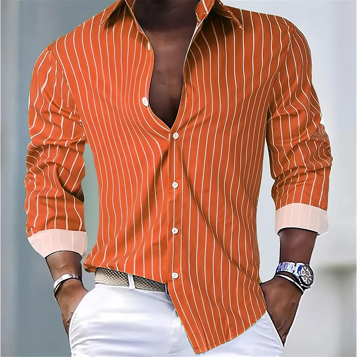 Men’s Fashion Loose Striped Shirt 16 Colors Shirt Casual Breathable Lapel Button Long Sleeve Shirt Top Comfortable Soft Fabric