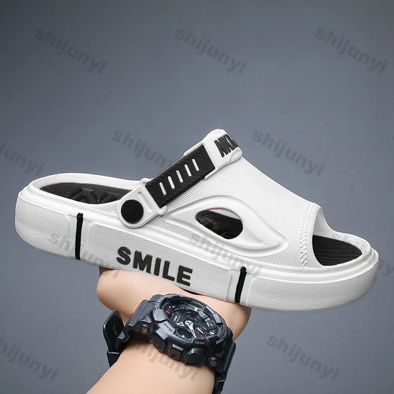 Men’s One Word Slippers Summer Breathable Outdoor Non Slip Sports Sandals Lightweight Comfortable Fashion Soft Sole Beach Shoes