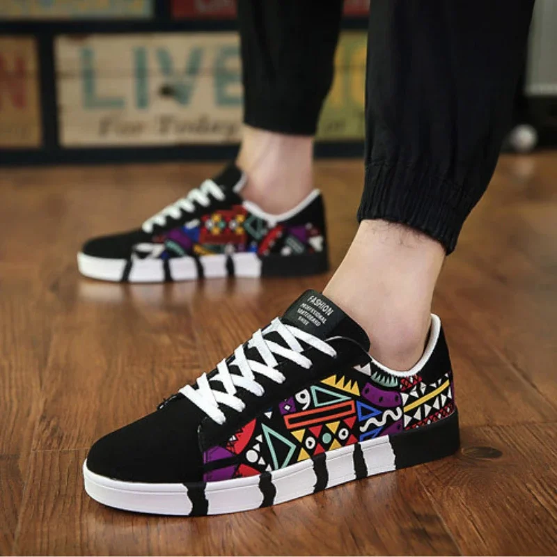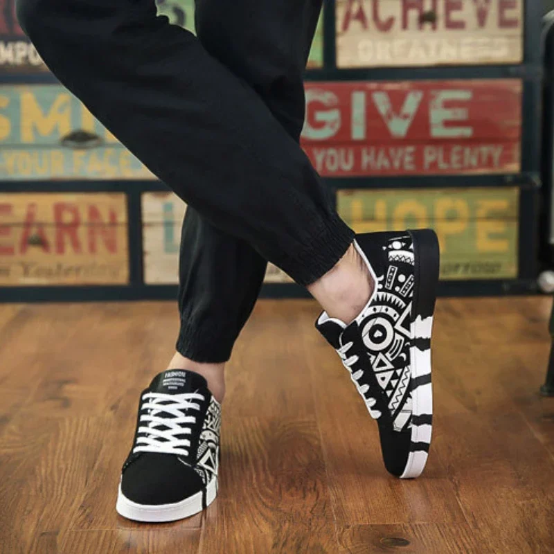 Men’s Sneakers Graffiti Canvas Shoes Fashion Black Casual Shoes Lace-up Vulcanized Shoe Designer Flat Men Shoes Tenis Masculino