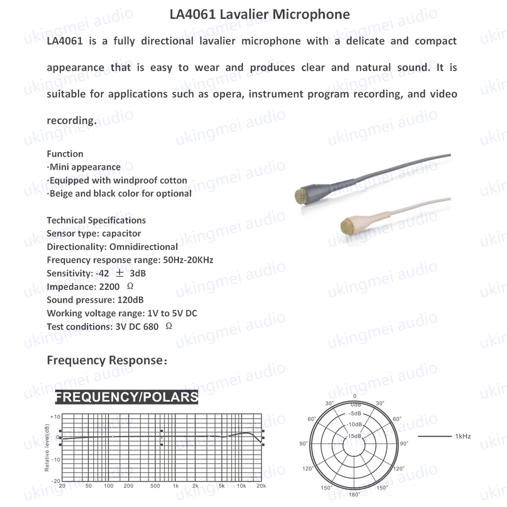 Miniature Microphone Copy From DPA4061 Omnidirectional Lo-Sensitivity Lavalier Microphone with TA3F 3Pin for AKG Transmitter