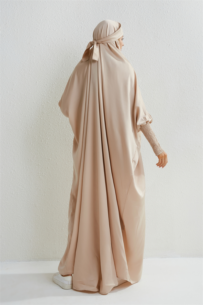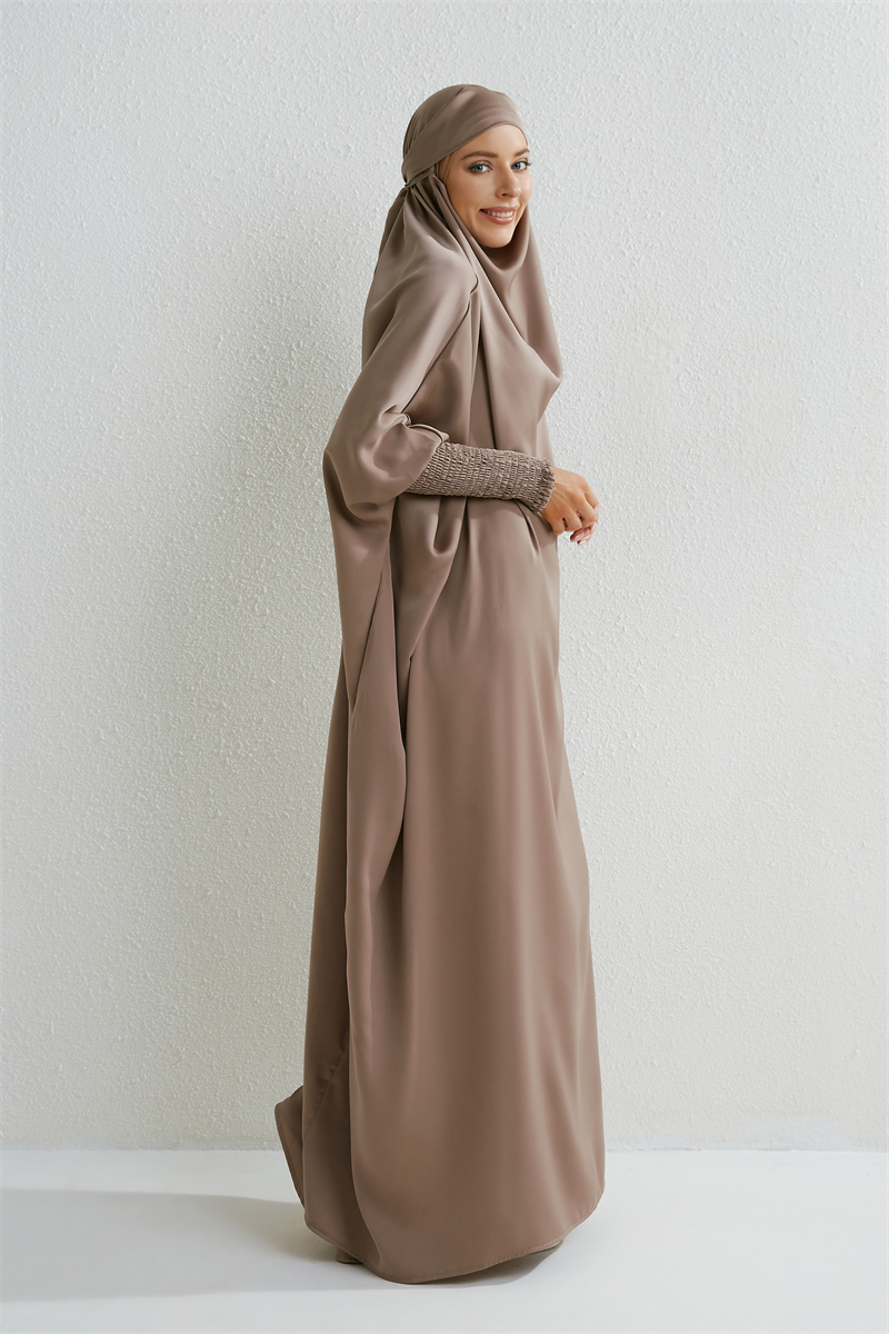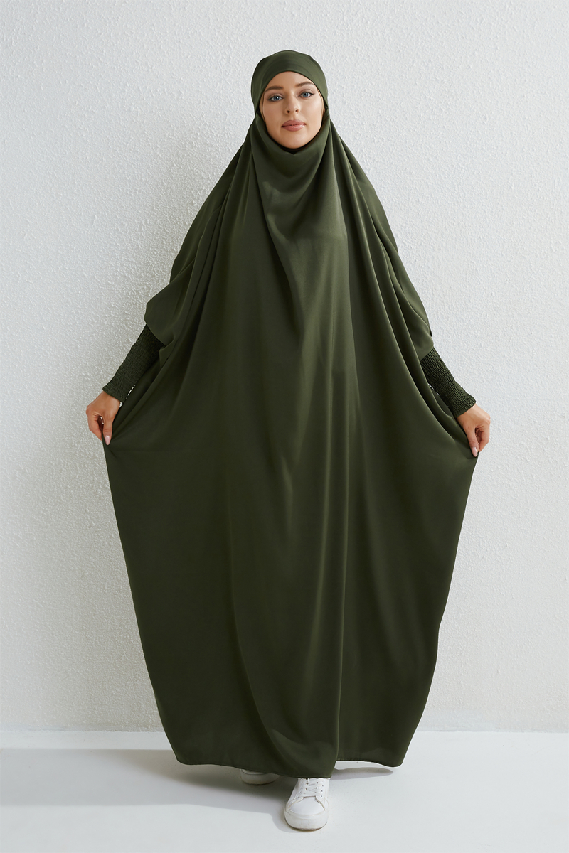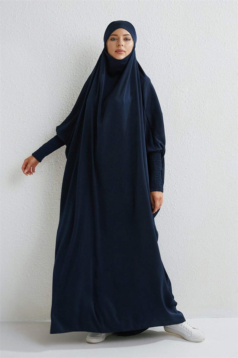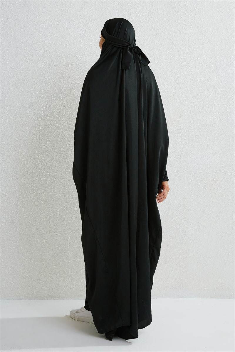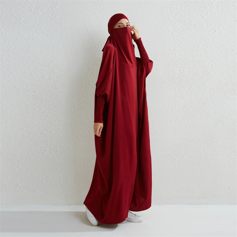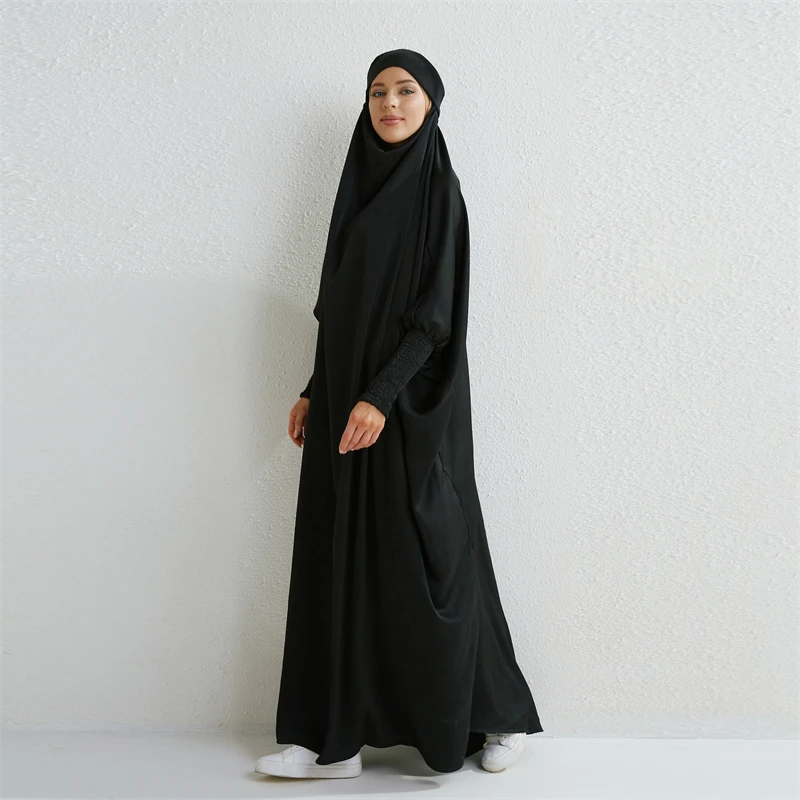 Muslim Abaya Hooded Smocking Sleeve One-piece Prayer Dress Women Jilbab Islamic Clothing Dubai Saudi Black Robe Turkish Modesty