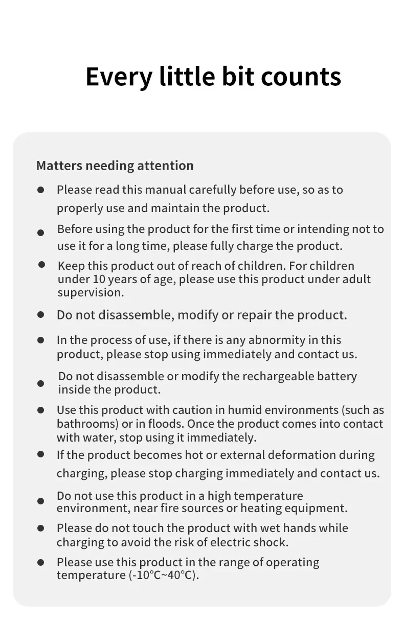 1. لا تستخدم المنتج في بيئة ساخنة أو بالقرب من مصدر الحريق.