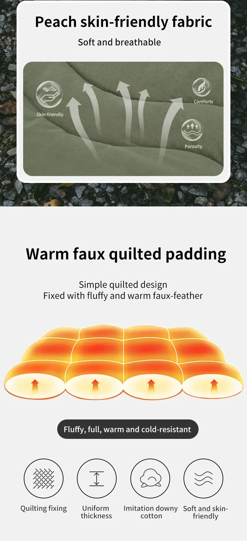 • Material: Peach skin velvet,Pongee,Imitation feather cotton