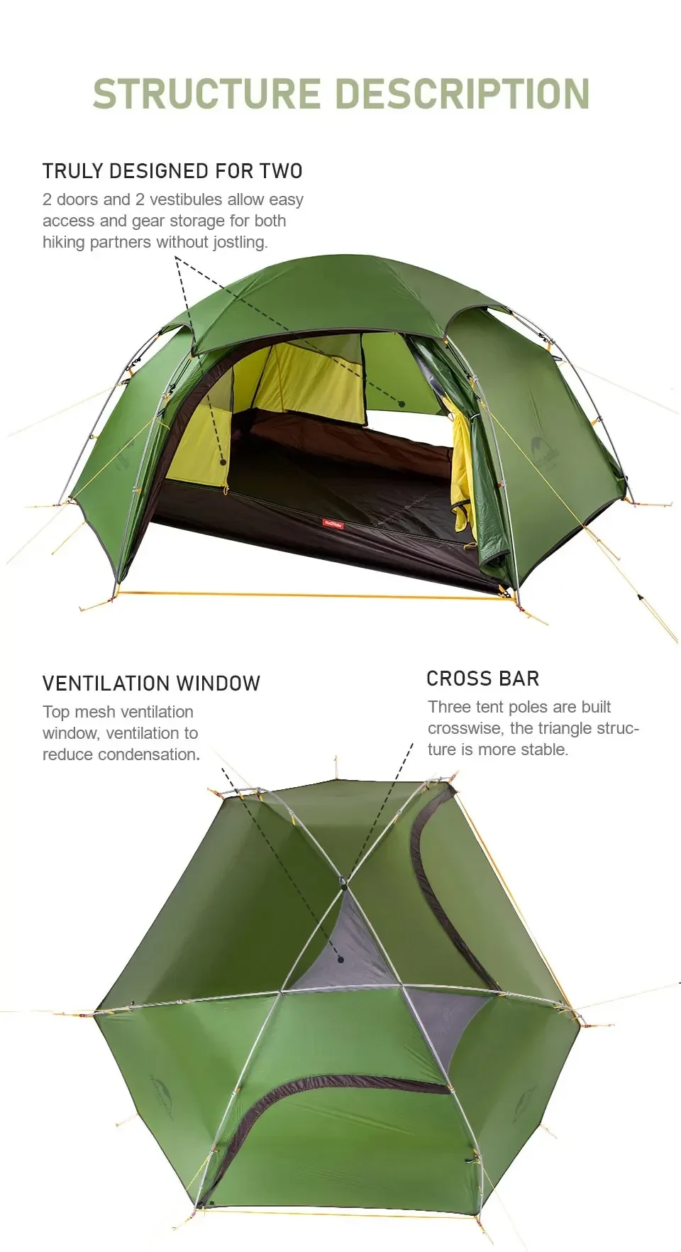 Naturehike سحابة الذروة التخييم خيمة مقاوم للماء المحمولة T-شكل سستة المشي لمسافات طويلة خيمة في الهواء الطلق 4 الموسم النايلون 2 شخص على ظهره خيمة
