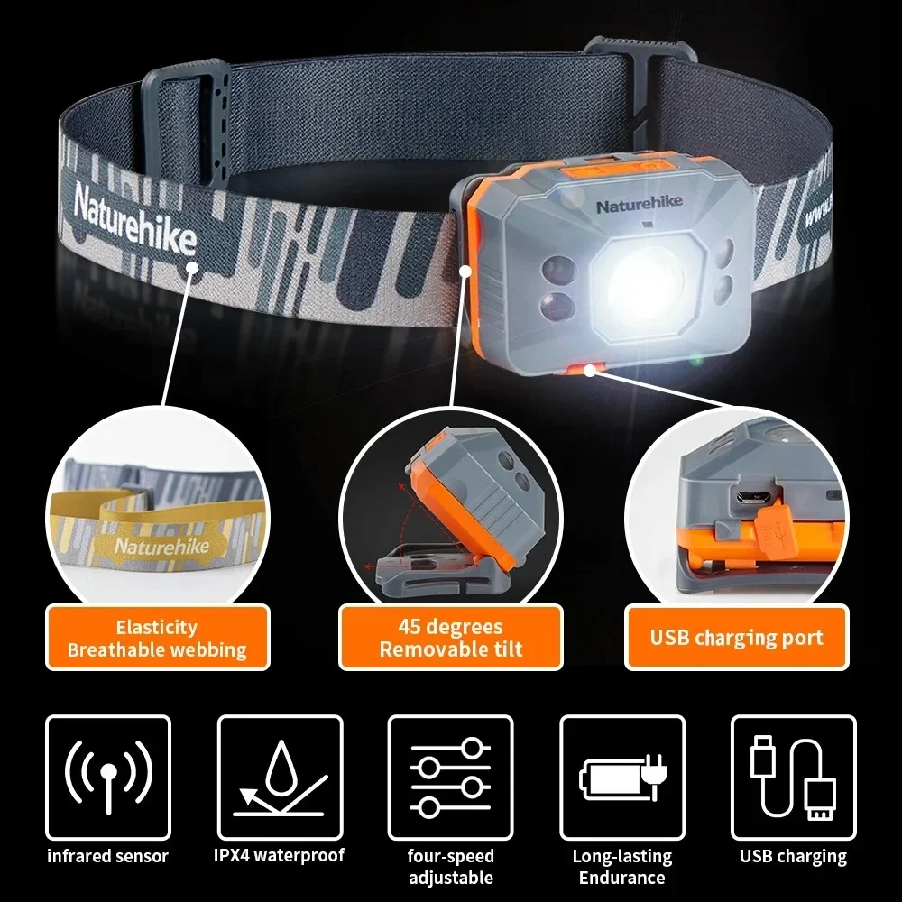 Naturehike-ضوء تخييم خفيف ، IPX4 مصباح أمامي بمستشعر للماء ، قدرة تحمل عالية 42 ساعة ، فانوس شحن USB ، مصباح المشي لمسافات طويلة في الهواء الطلق