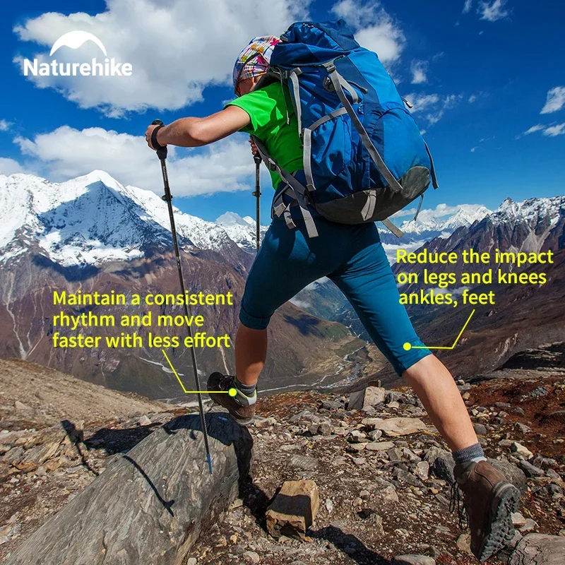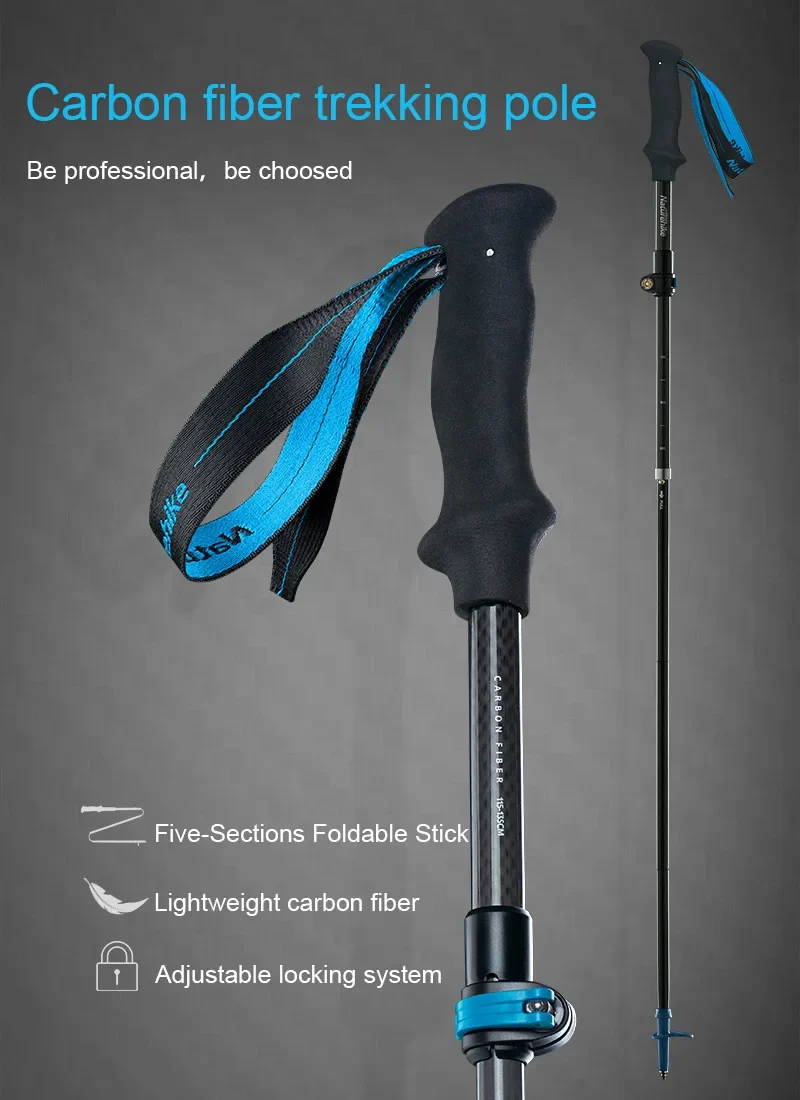 Naturehike-عصا مشي كاملة من ألياف الكربون للتخييم ، عمود مشي خفيف للغاية ، قصب قابل للطي ، حمولة عالية ، 5 أقسام ، غم
