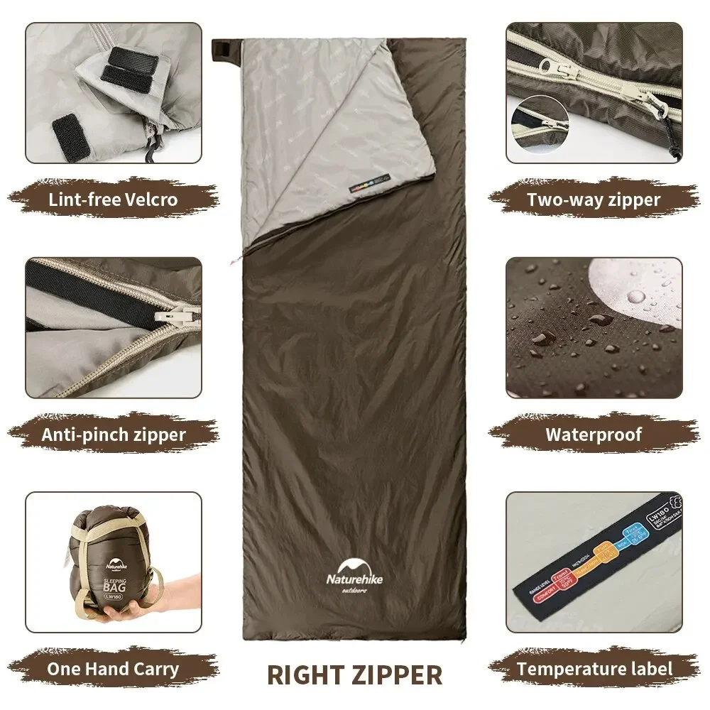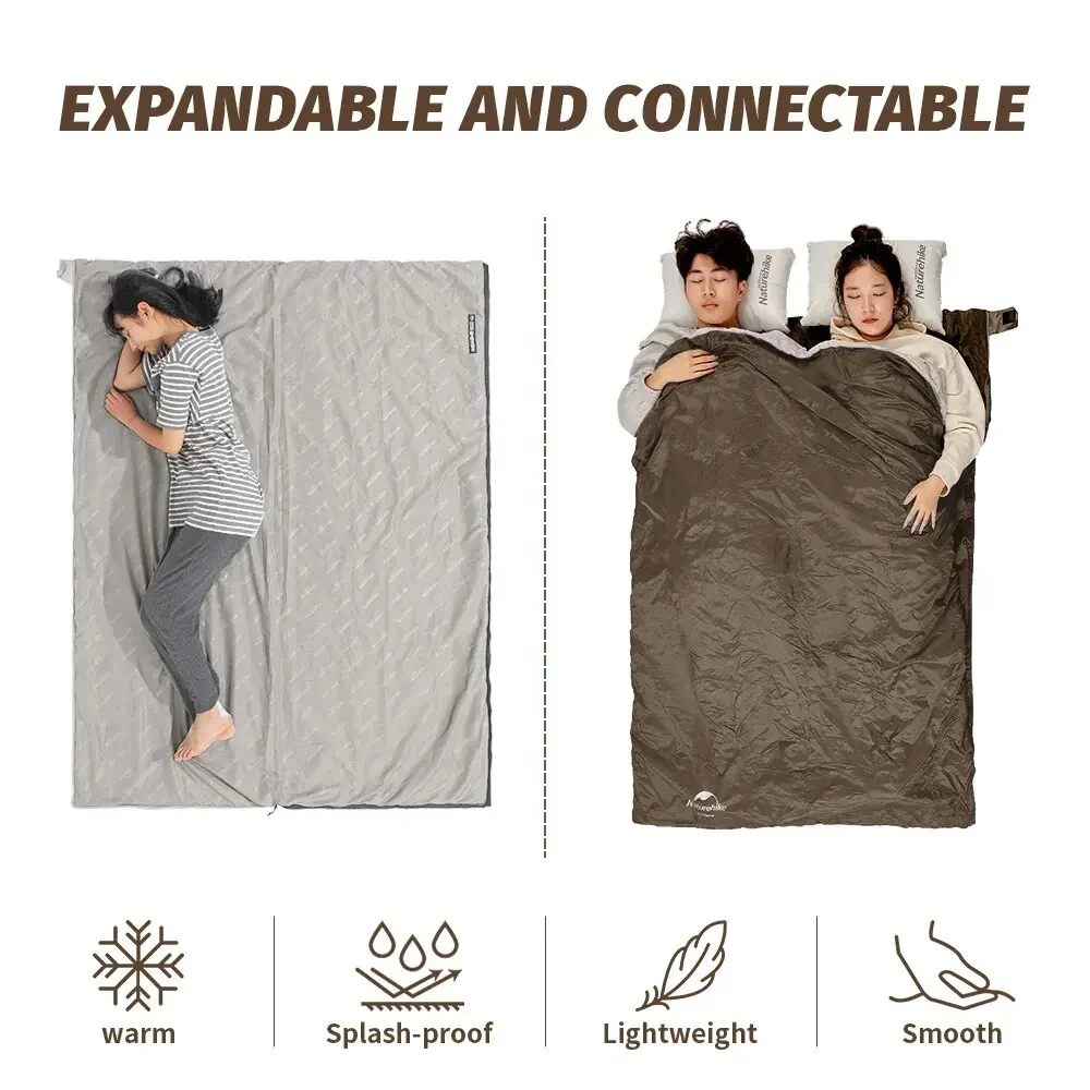 Naturehike-كيس نوم للتخييم ، مقاوم للماء ، قابل للتقسيم ، خفيف الوزن ، بطانة لحاف مزدوجة ، محمول ، المشي لمسافات طويلة ، 3 مواسم