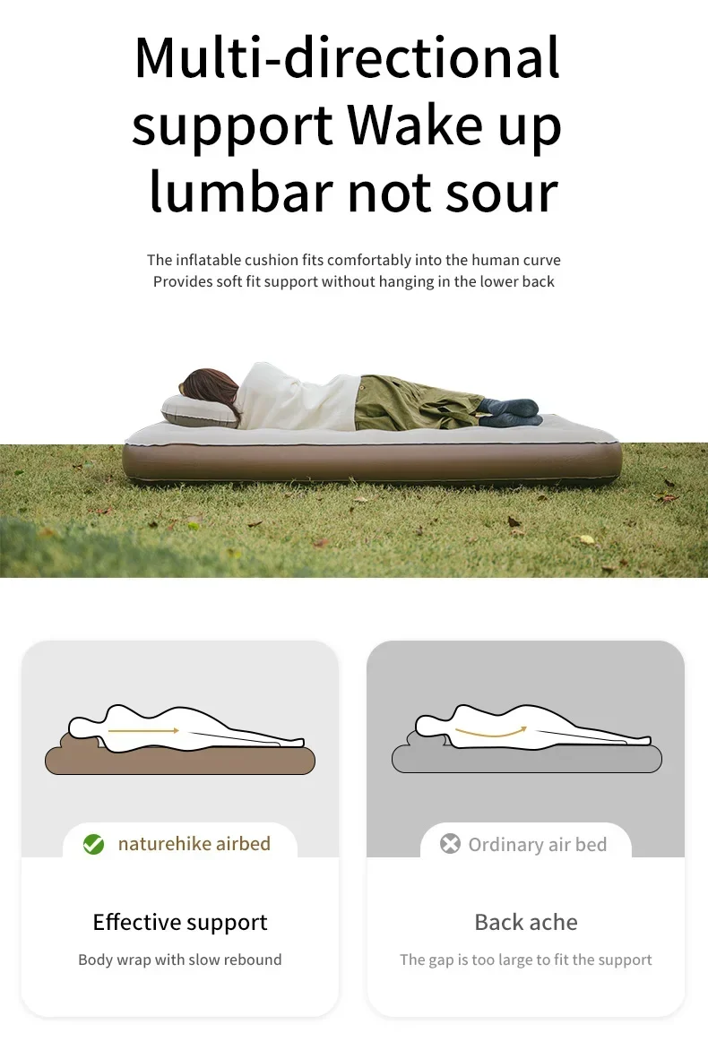 Naturehike 2024 جديد التخييم مرتبة هوائية 2 شخص عالية تحميل رشاقته سرير المشي لمسافات طويلة التضخم السريع المنزلية الهواء حصيرة