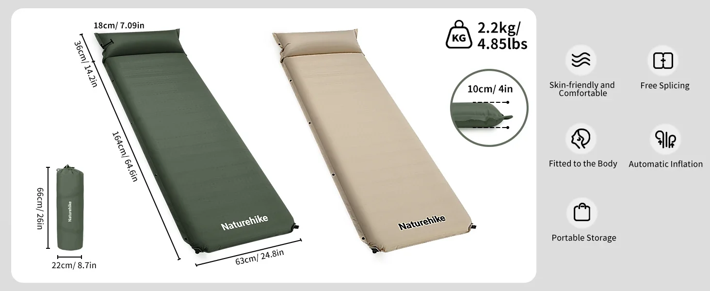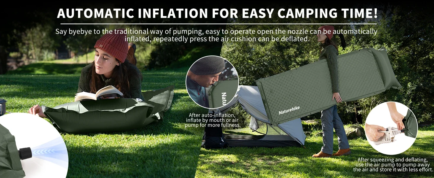Naturehike 2025 جديد التخييم الذاتي مرتبة هوائية 10 سنتيمتر رشاقته Splicable مزدوجة الهواء سرير للطي التنزه تضخيم فراش
