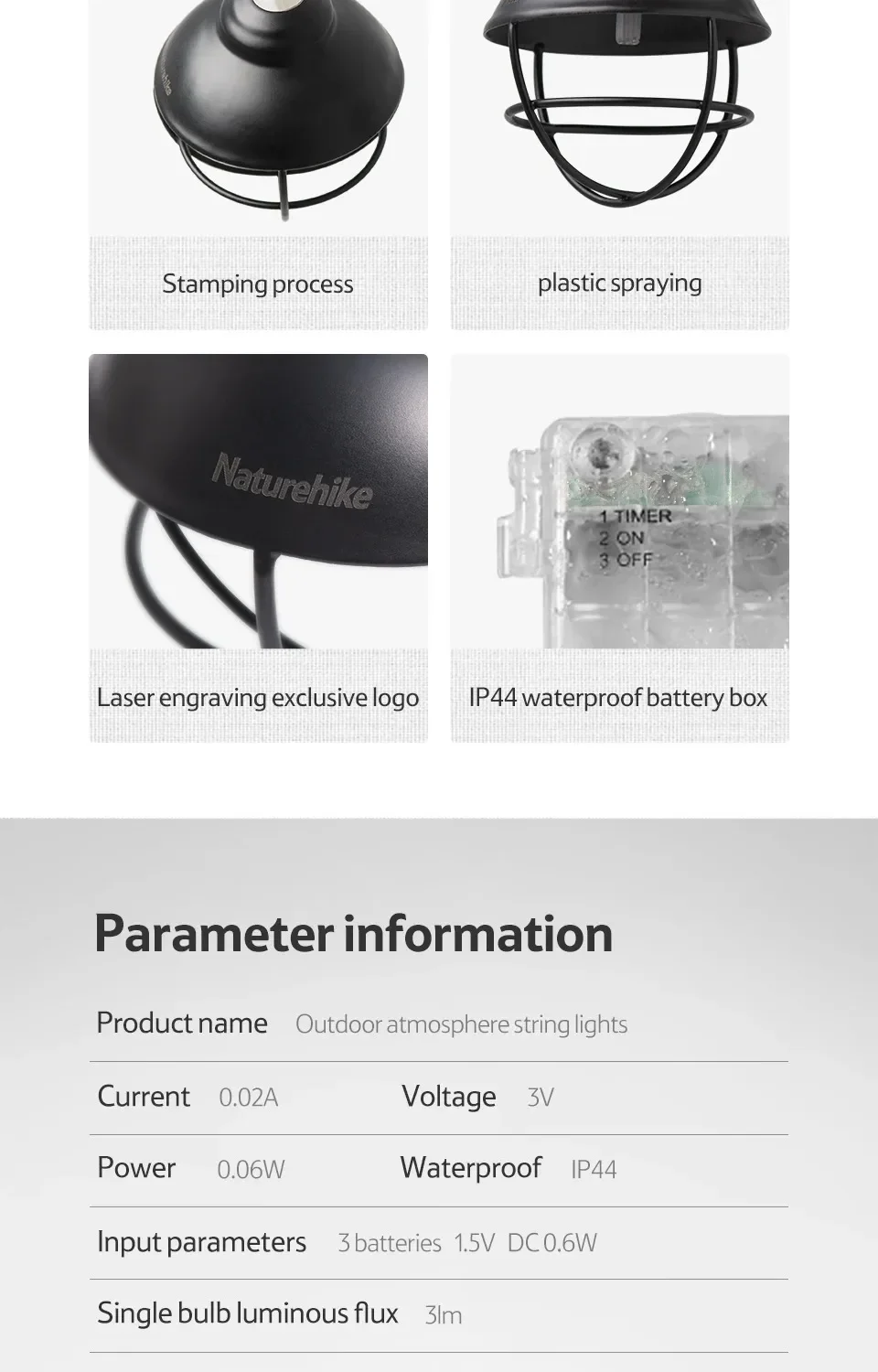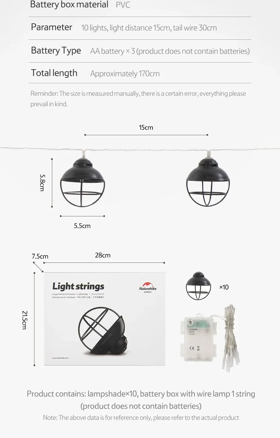 Naturehike 2025 جديد فانوس معلق خيمة مصباح خفيفة 170 سنتيمتر بطارية مقاوم للماء ضوء التخييم في الهواء الطلق مصباح لتهيئة الجو سلسلة