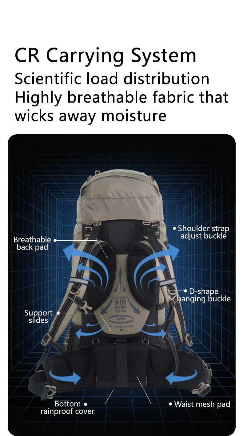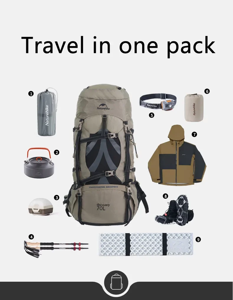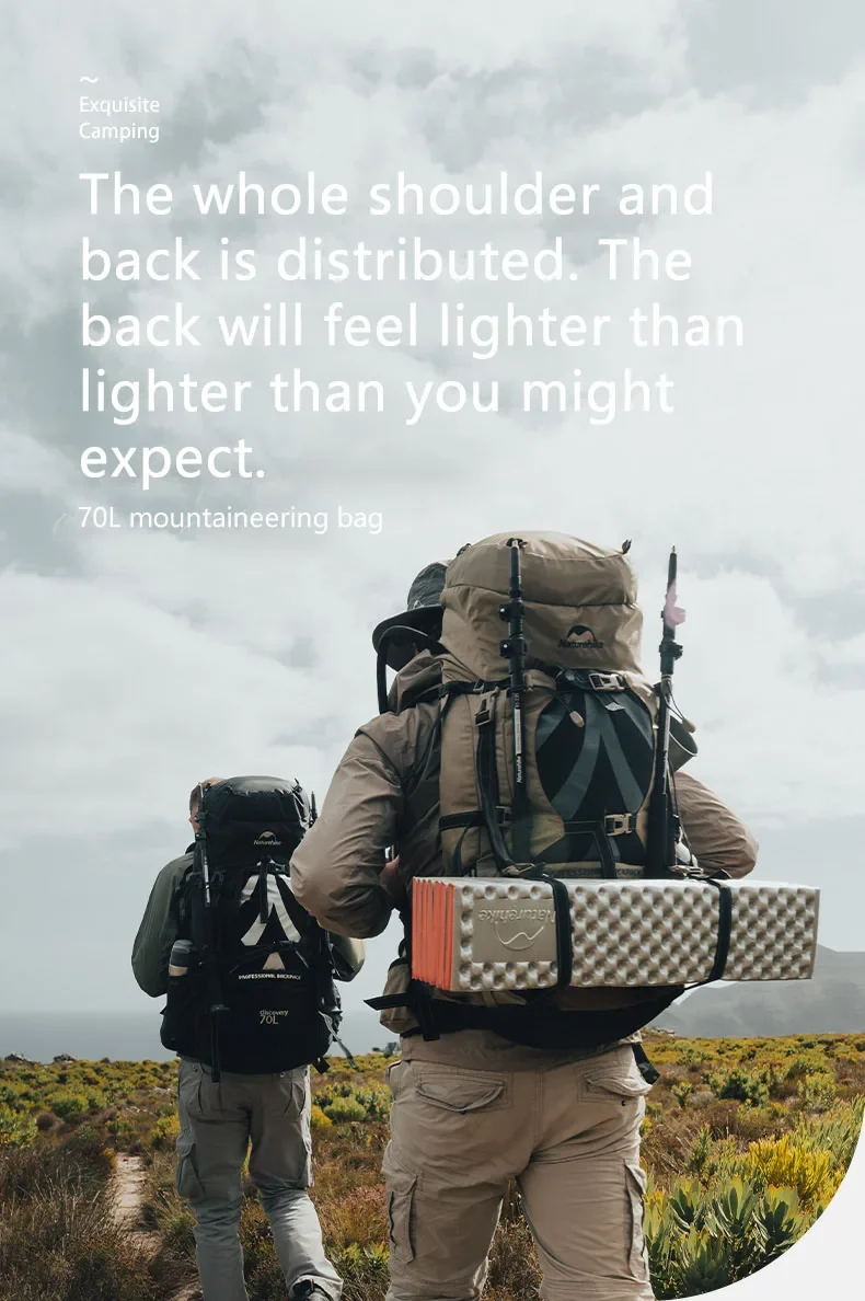 • سعة كبيرة:توفر حقيبة ظهر التخييم Naturehike 70L مساحة واسعة لجميع احتياجات المغامرة في الهواء الطلق ، مما يضمن لك البقاء منظمًا ومستعدًا.