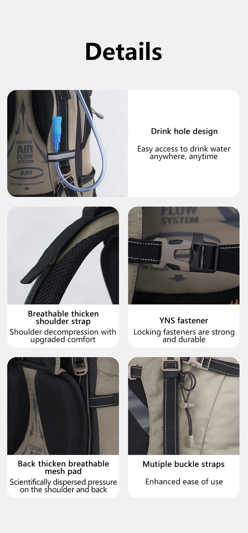 • تصميم حسب النوع:مع تصميمها المتنوع ، هذه الحقيبة مناسبة لكل من الرجال والنساء ، مما يجعلها خيارًا رائعًا لأي شخص يخطط لرحلة في الهواء الطلق.
