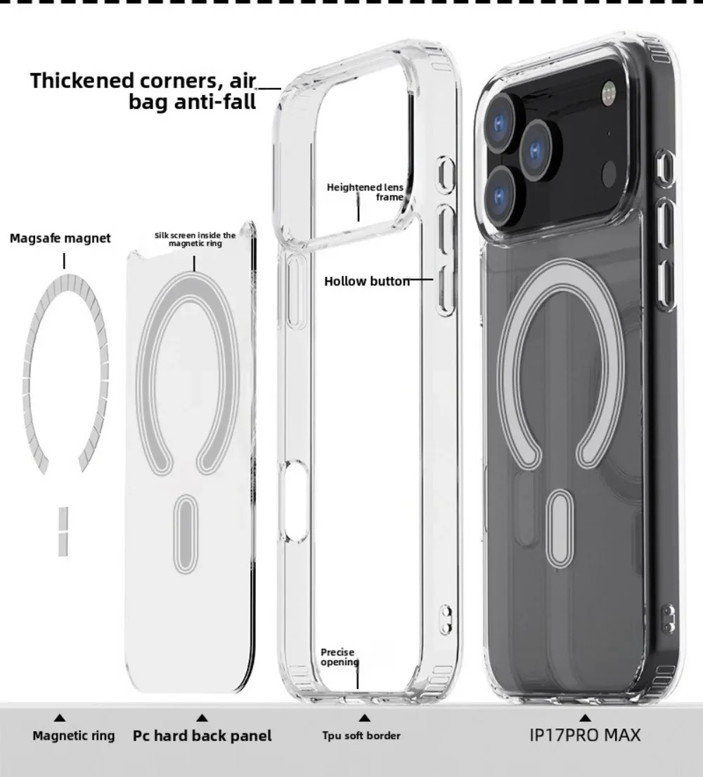 New Clear MagSafe Case for iPhone 17 Air 17 16 15 14 13 12 Plus Pro Max Shockproof Wireless Charging Cover with Magnetic Feature
