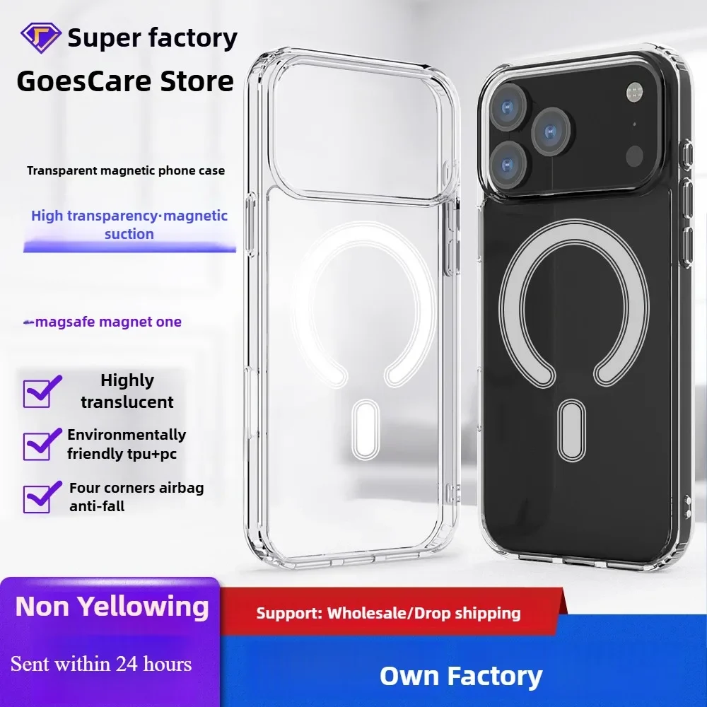 New Clear Anti Drop For iPhone 17 Air 16 Pro Max 15 14 13 12 11 Material Non yellowing Magnetic Charging Macsafe Protective Case
