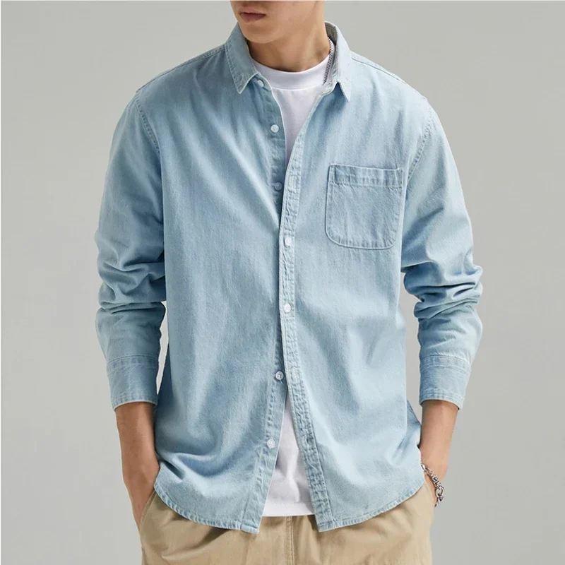 Denim Shirt Button Down Collar Long Sleeve Casual Vintage Versatile
