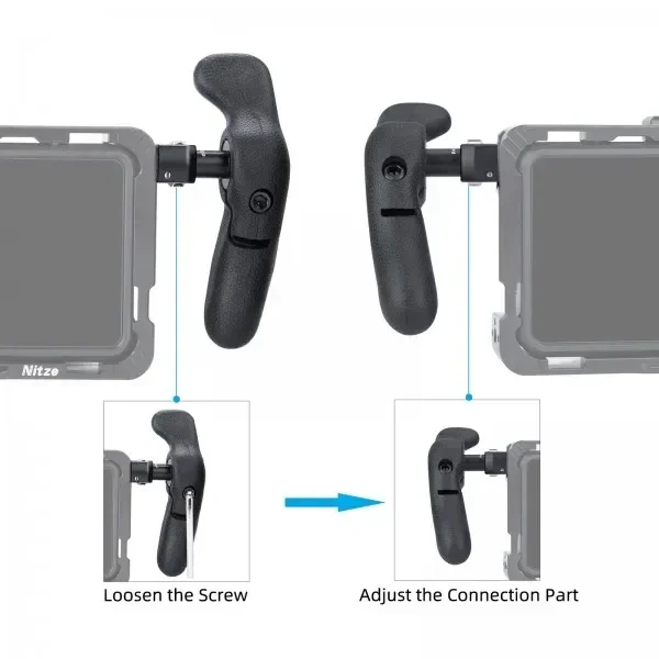 【360° Rotation】The 1/4; locating pins connection part supports to be rotated 360° as you need. You can also loosen the 3/16; screw on the side of the handle with the included hex spanner to rotate the position of the connection part.