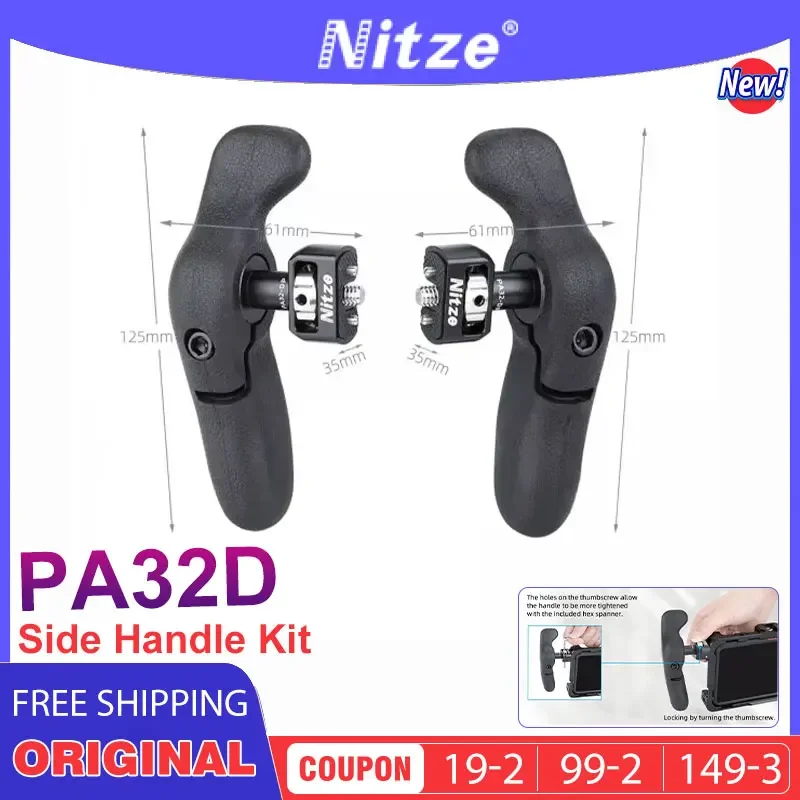 Nitze PA32D Side Handle Kit with 1/4in Screw and Detachable Locating Pins Compatible with Smartphone iPad Monitor Cage▪Tablet