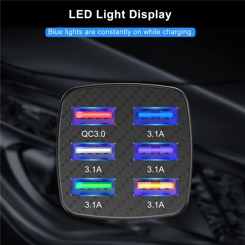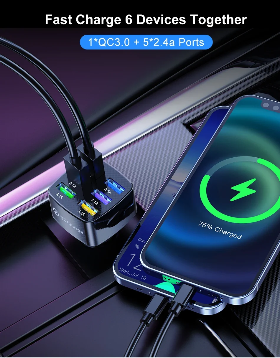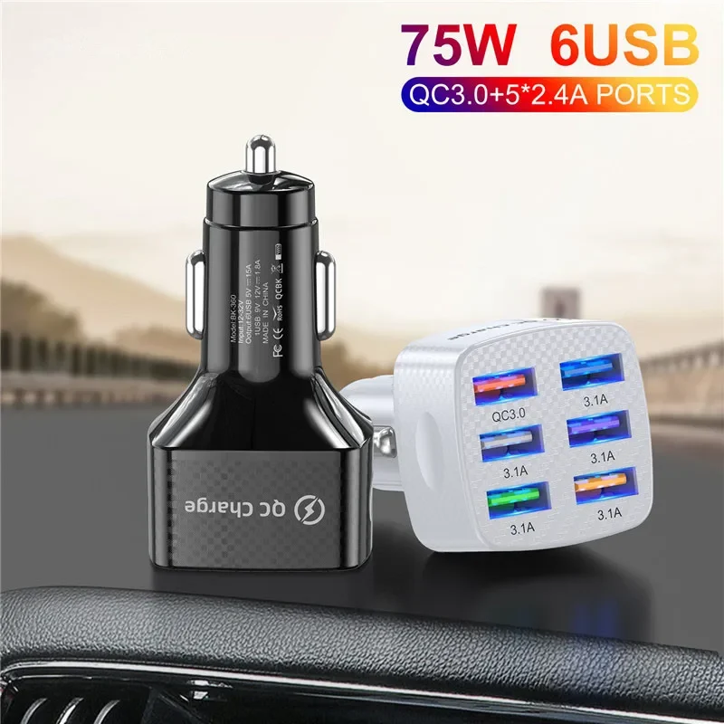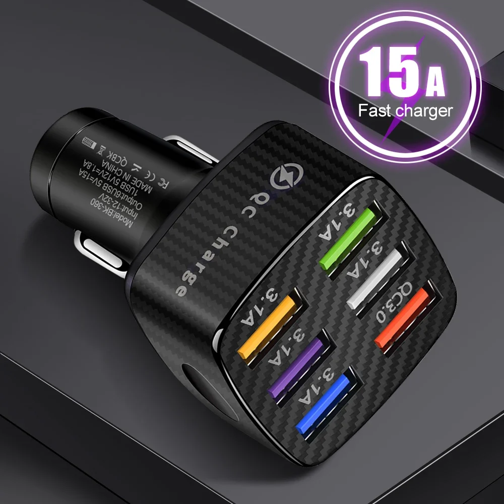 OLAF 6 USB Car Charger 75W Fast Charging Phone Adapter in Car 15A For iPhone 13 12 Pro Xiaomi Huawei Samsung Car Quick Charge