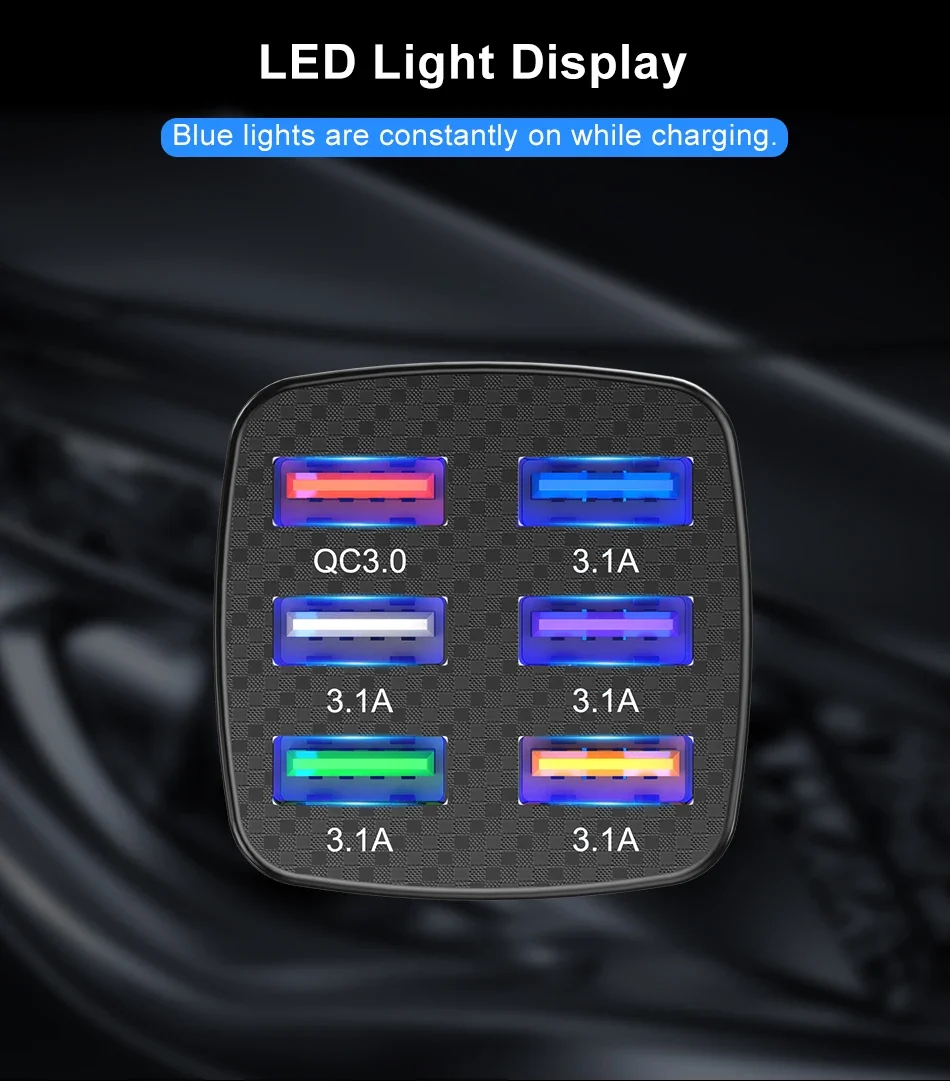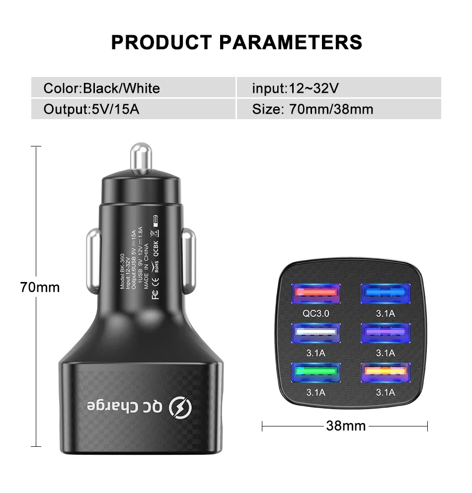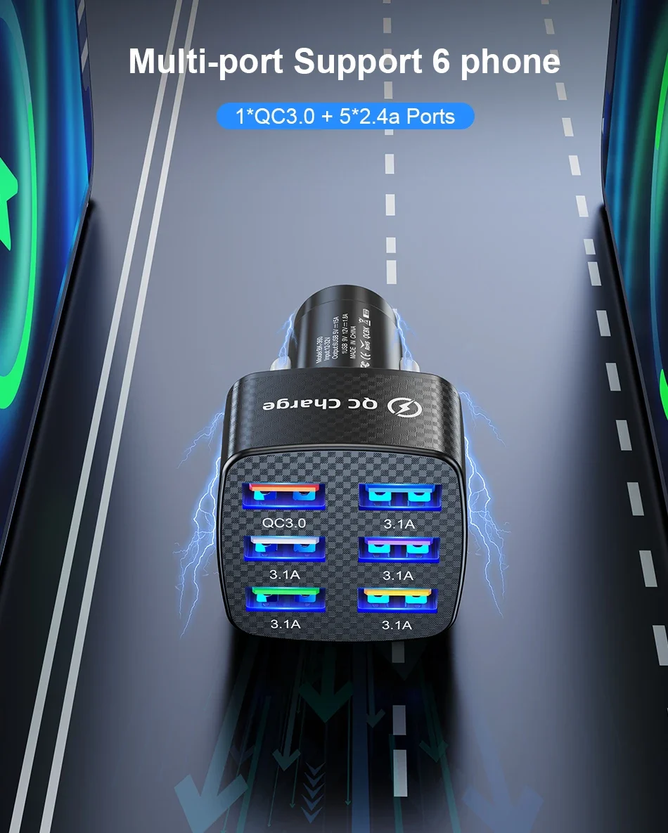 OLAF 6 USB Car Charger 75W Fast Charging Phone Adapter in Car 15A For iPhone 13 12 Pro Xiaomi Huawei Samsung Car Quick Charge