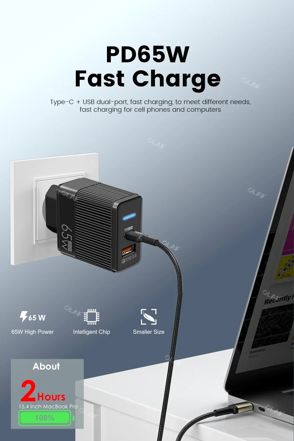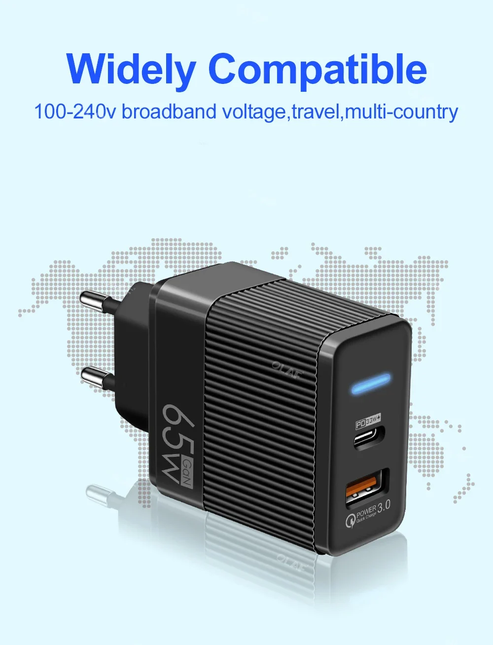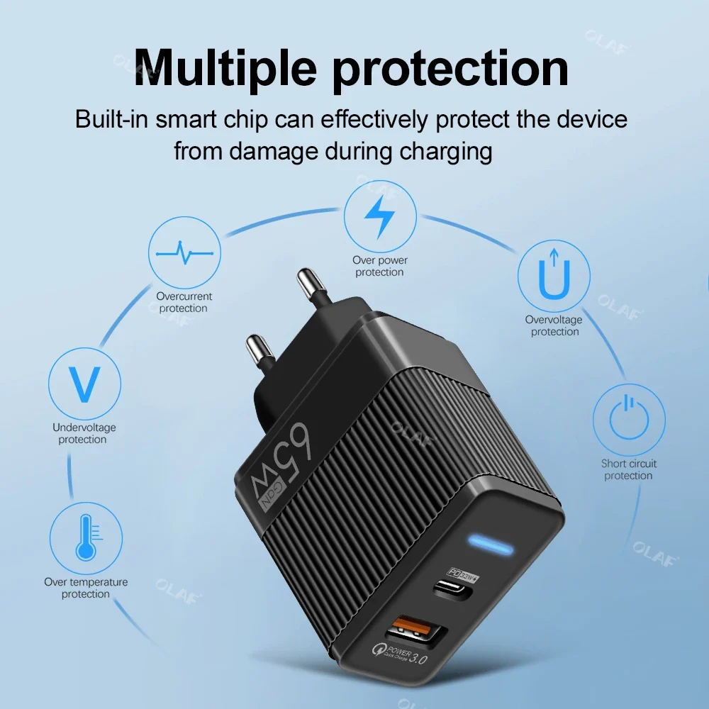 Olaf 65W GaN Charger USB Type C Quick Charge Korean US UK Plug Fast Charging Adapter For iPhone 13 Xiaomi Samsung PD Chargers