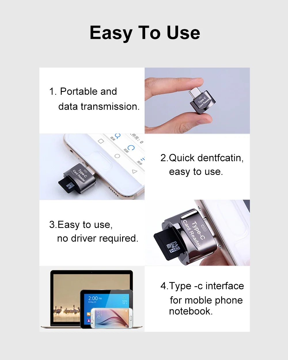 | Feature 10 | USB Type-C to TF SD Card Reader , Micro to TF SD |
