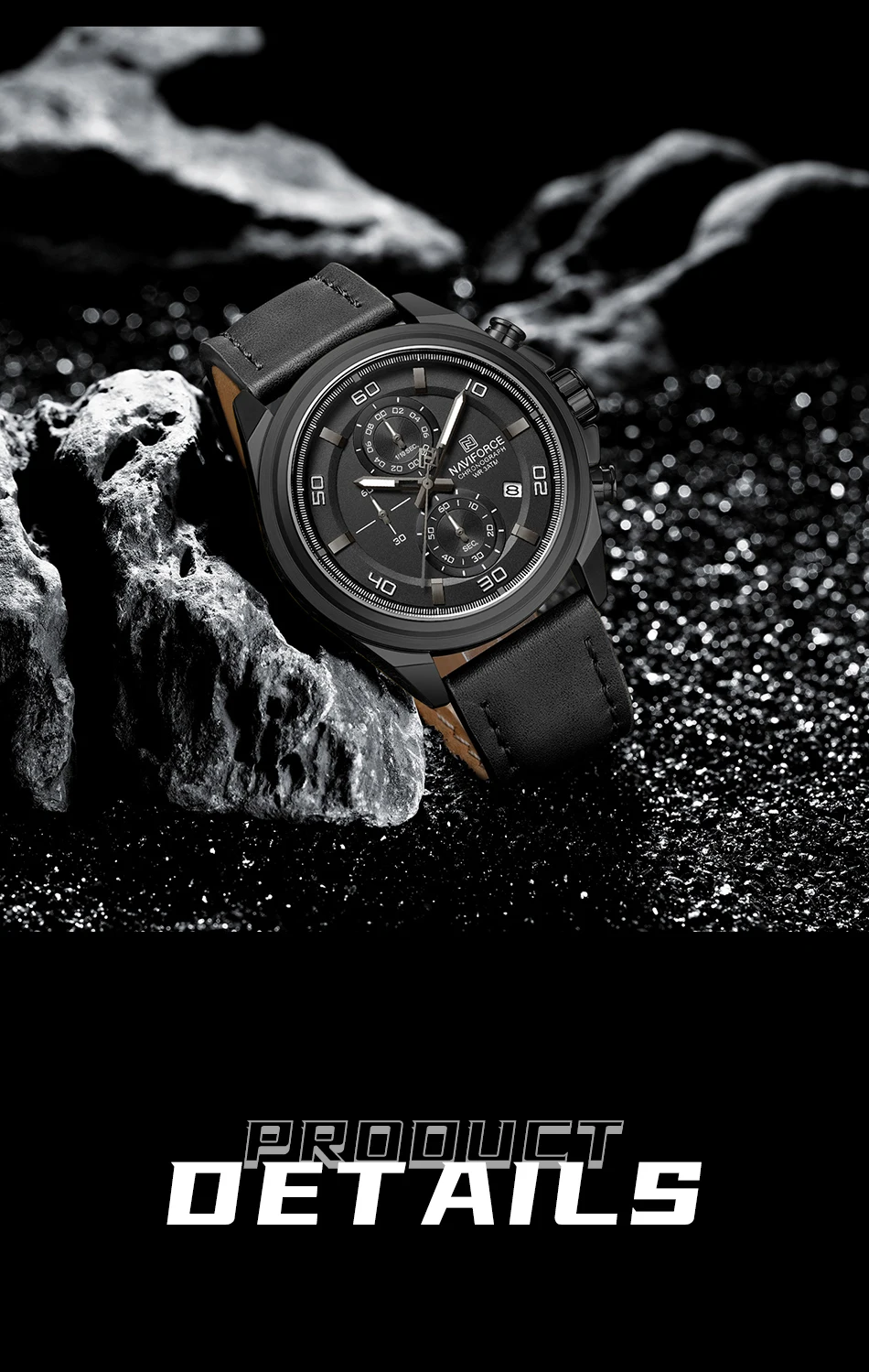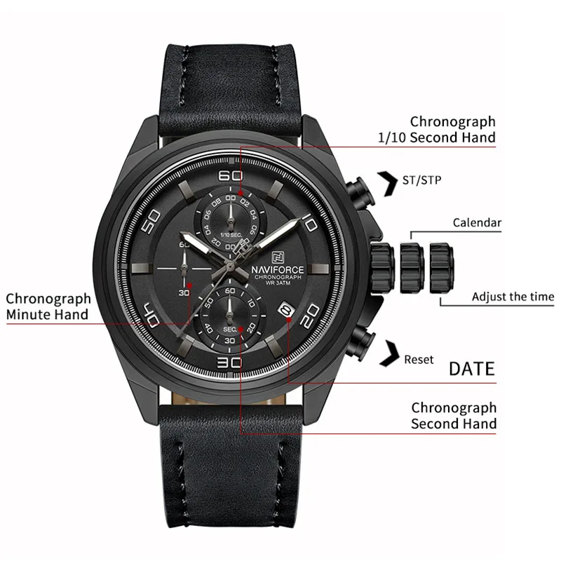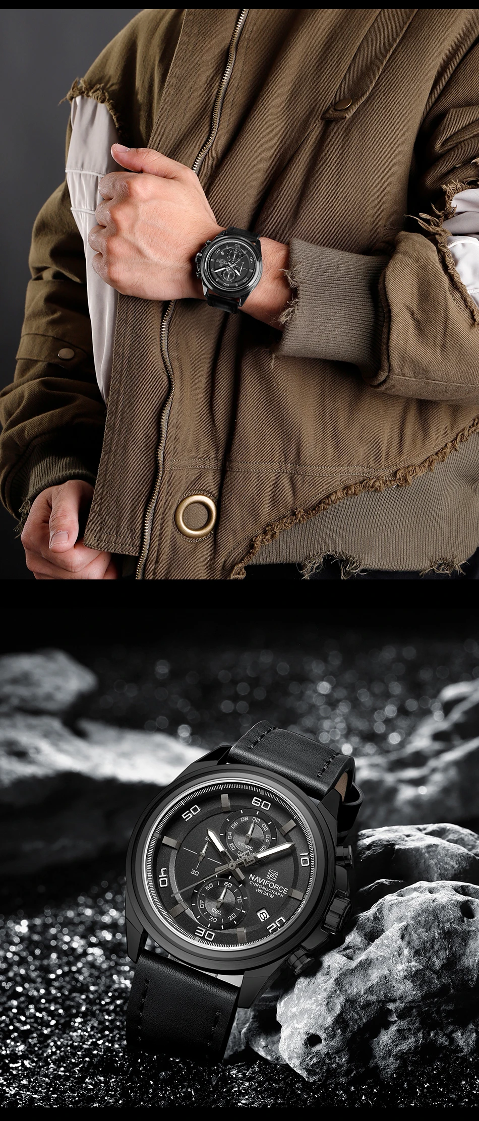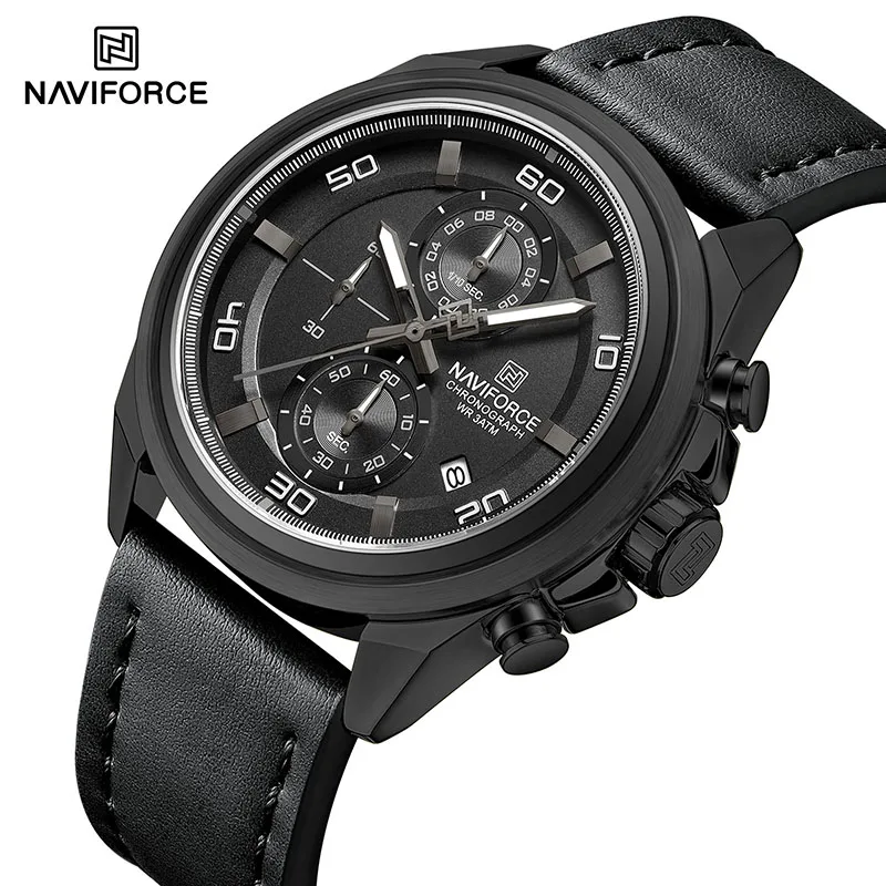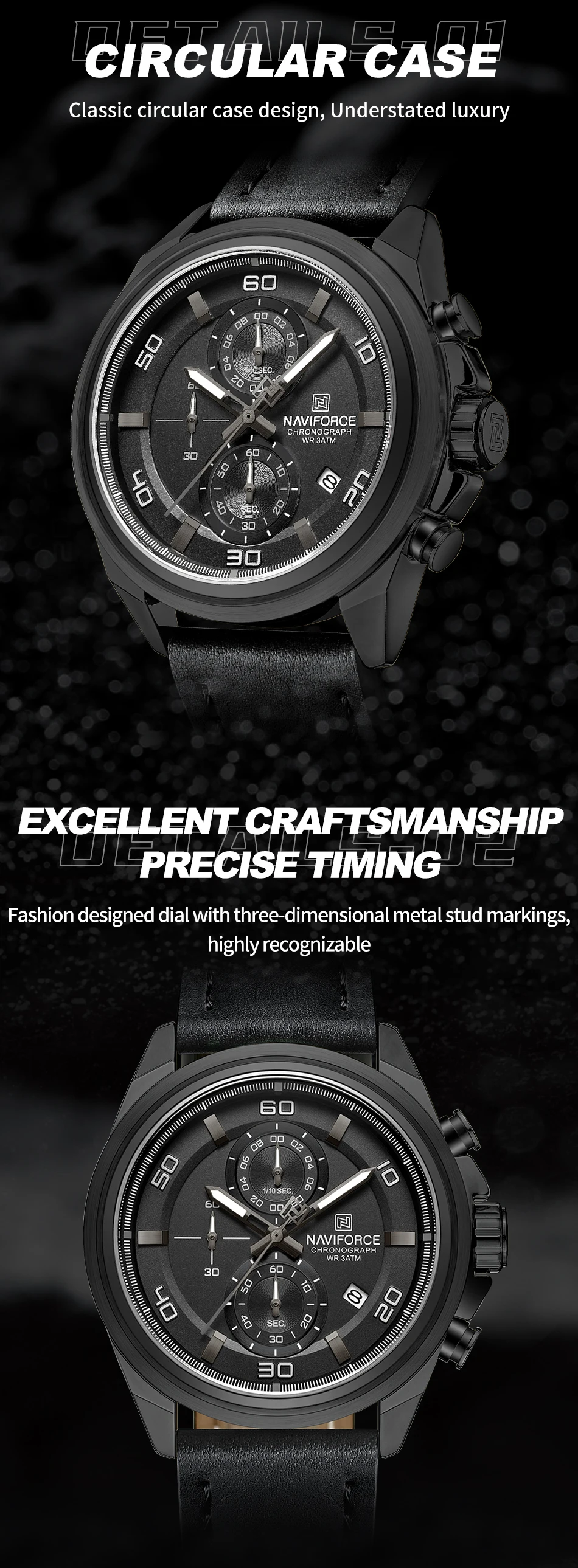 Original NAVIFORCE Business Luxury Leather Strap Men Watches Sports Chronograph Watch for Man 3ATM Waterproof Quartz Wristwatch