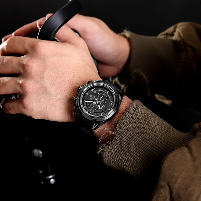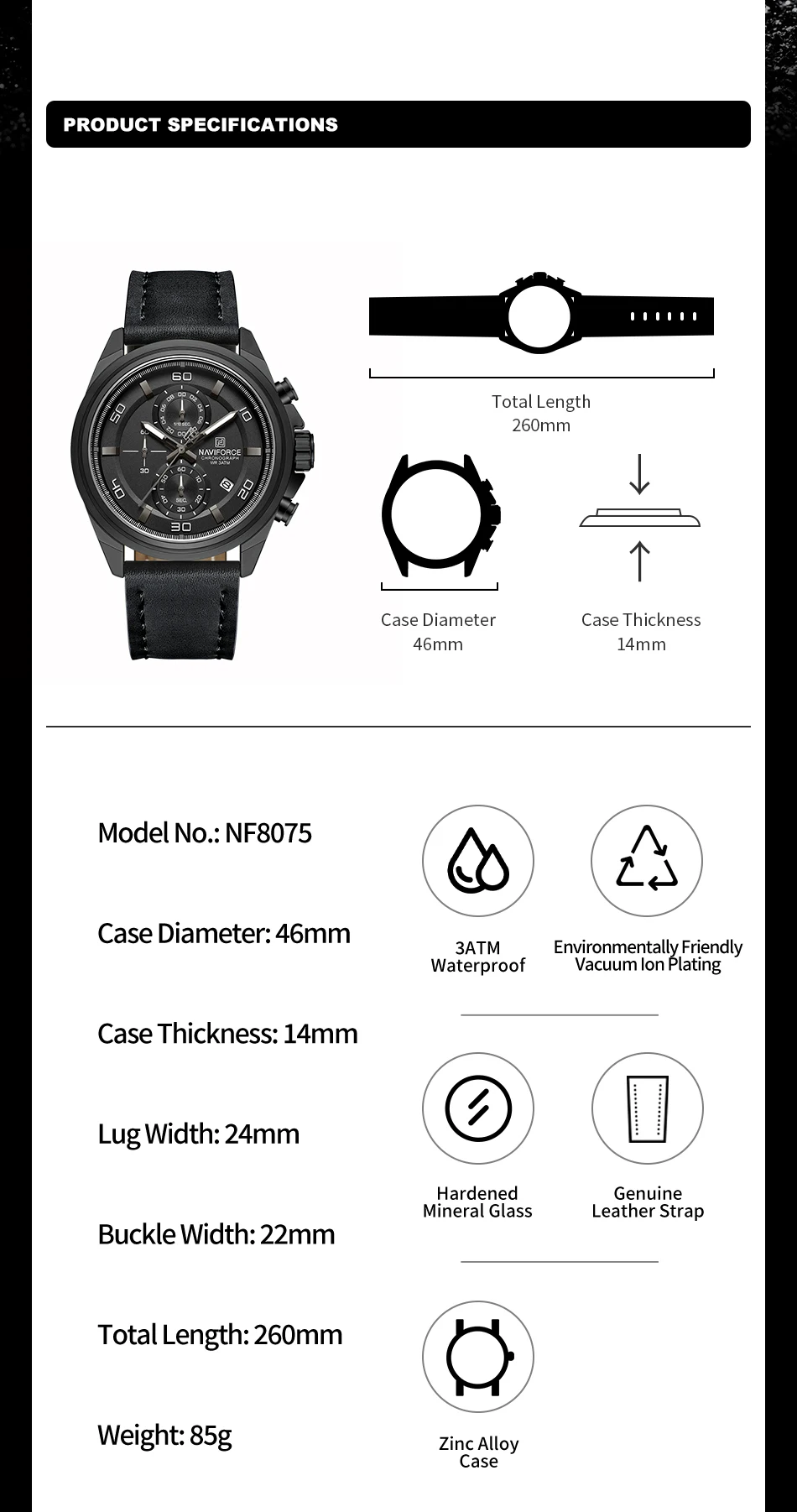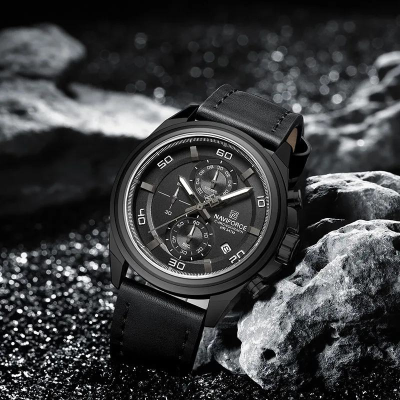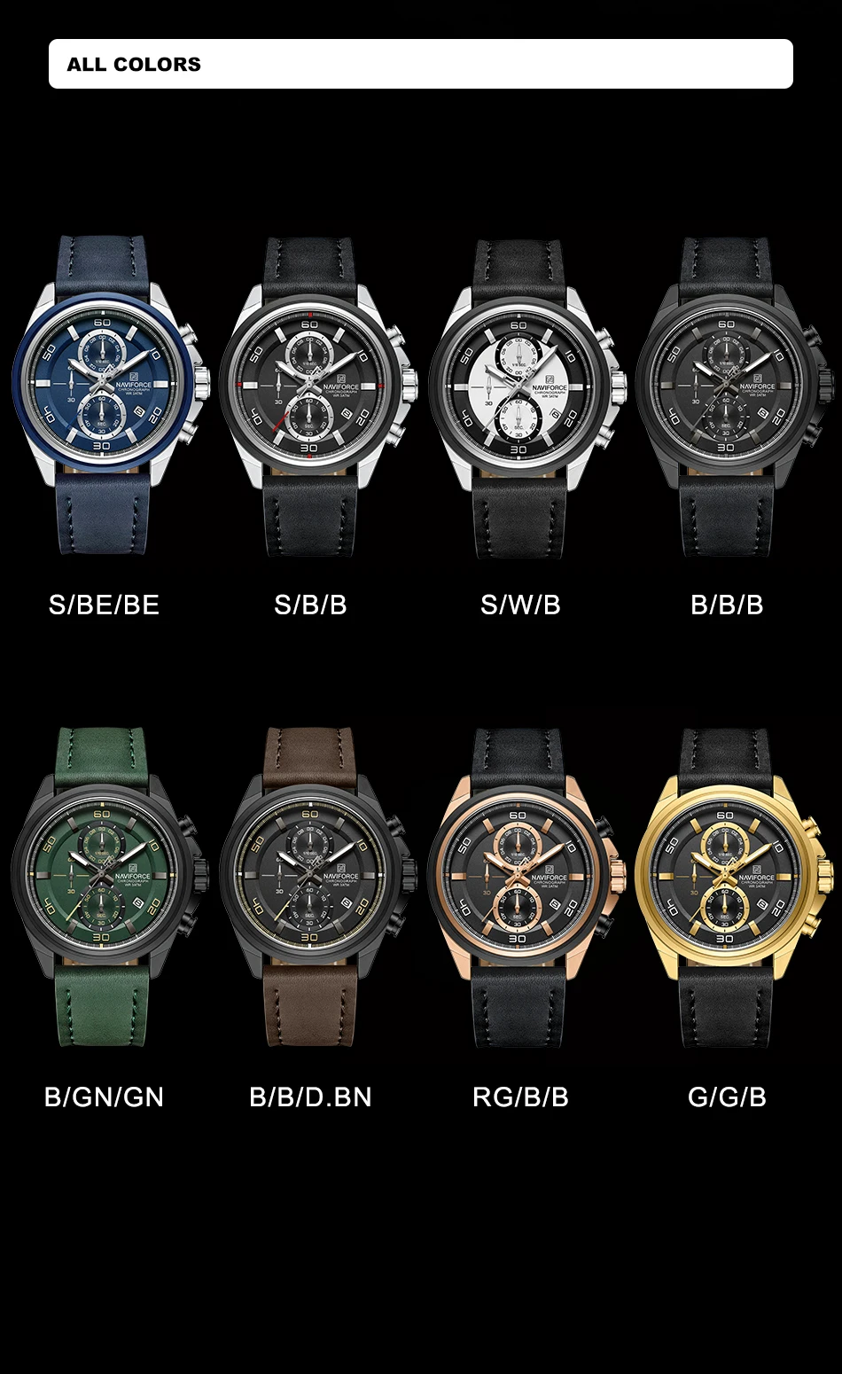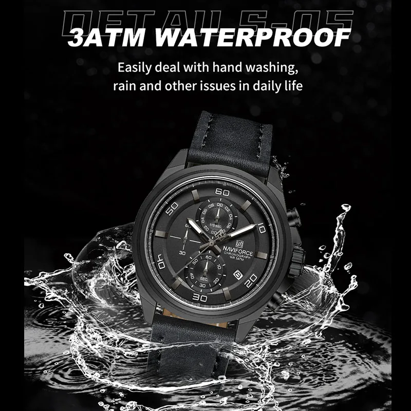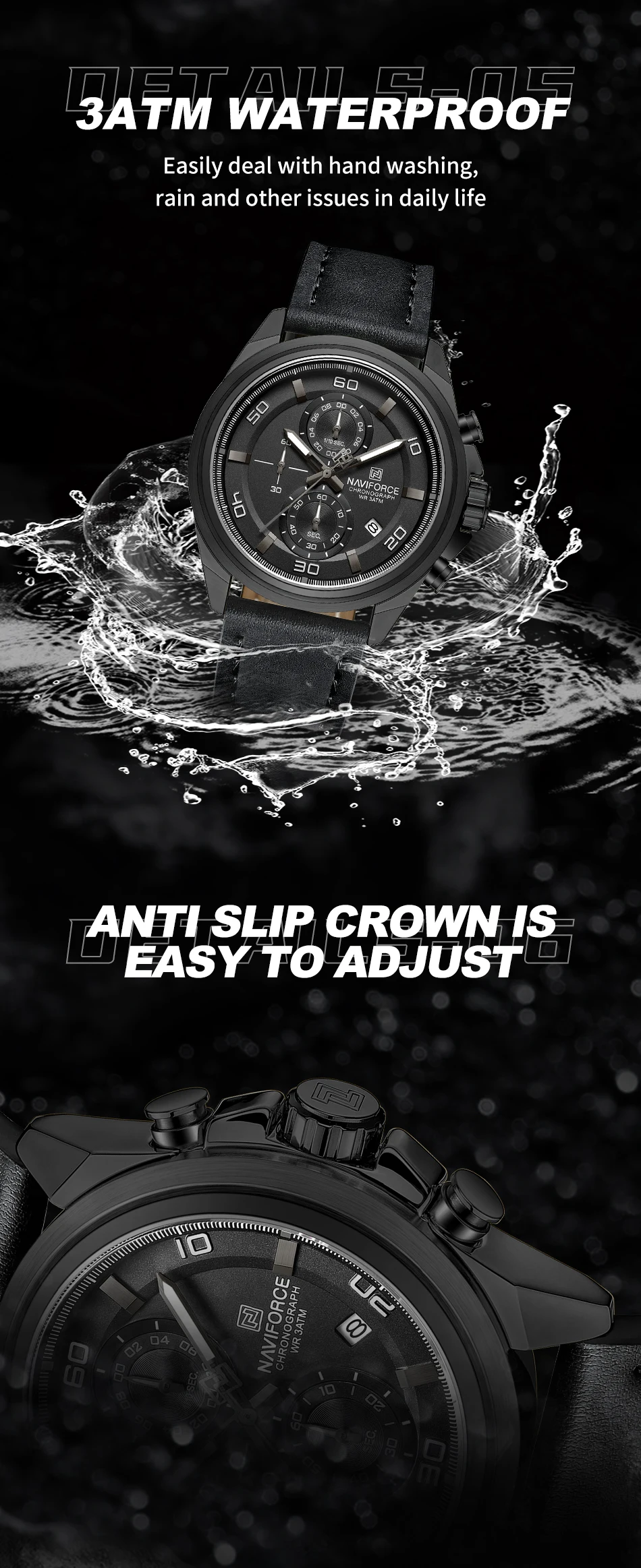 Original NAVIFORCE Business Luxury Leather Strap Men Watches Sports Chronograph Watch for Man 3ATM Waterproof Quartz Wristwatch