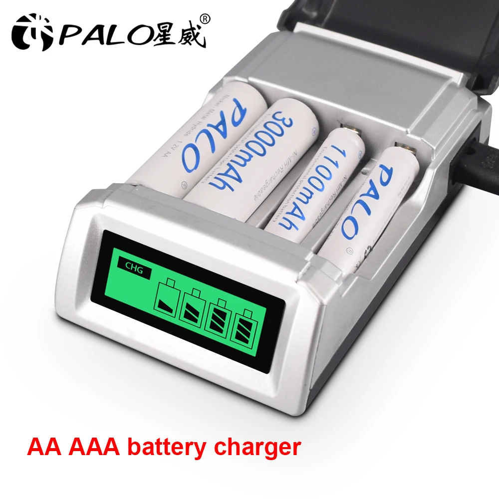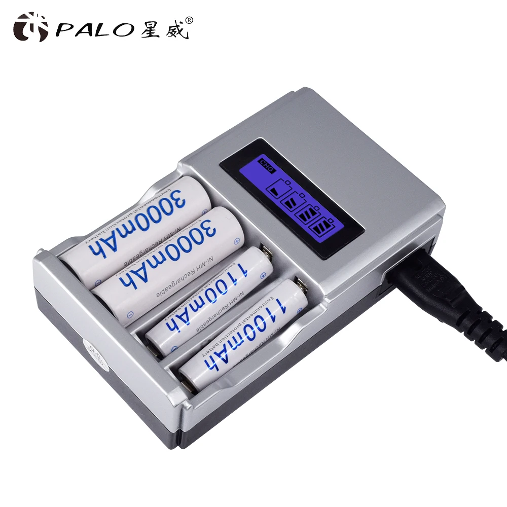 PALO LCD Display With 4 Slots Smart Intelligent Battery Charger For 1.2V AA / AAA NiCd NiMh Rechargeable Batteries fast charging