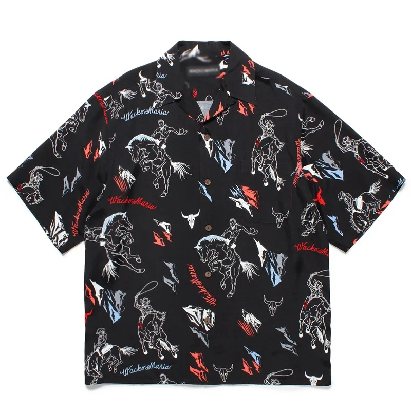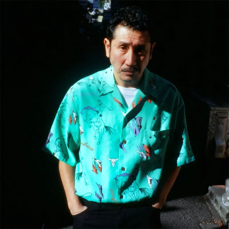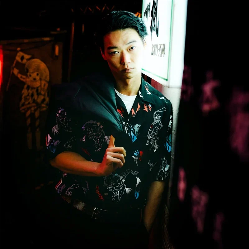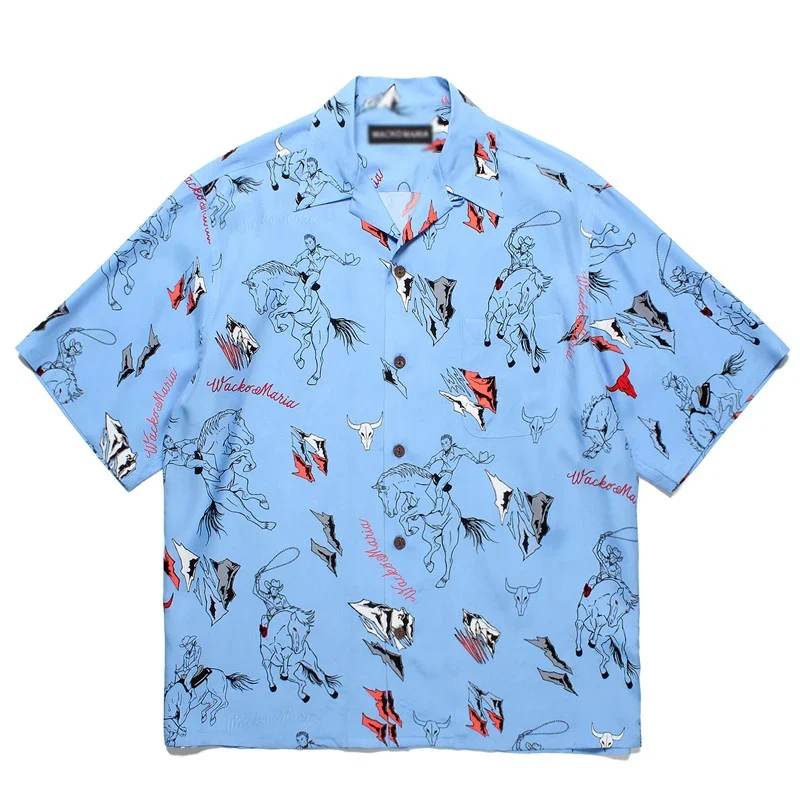 Pdmcms 25ss New Western Denim Drawstring Casual Synthetic Silk Hawaiian Lapel Short Sleeved Shirt For Men