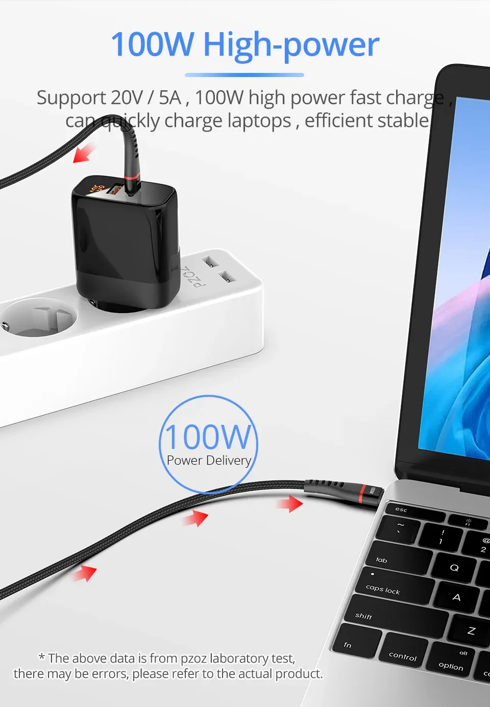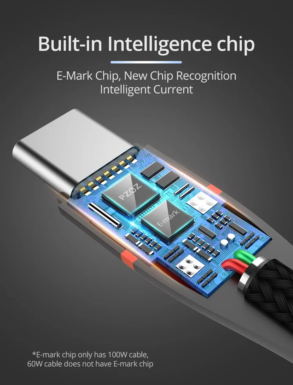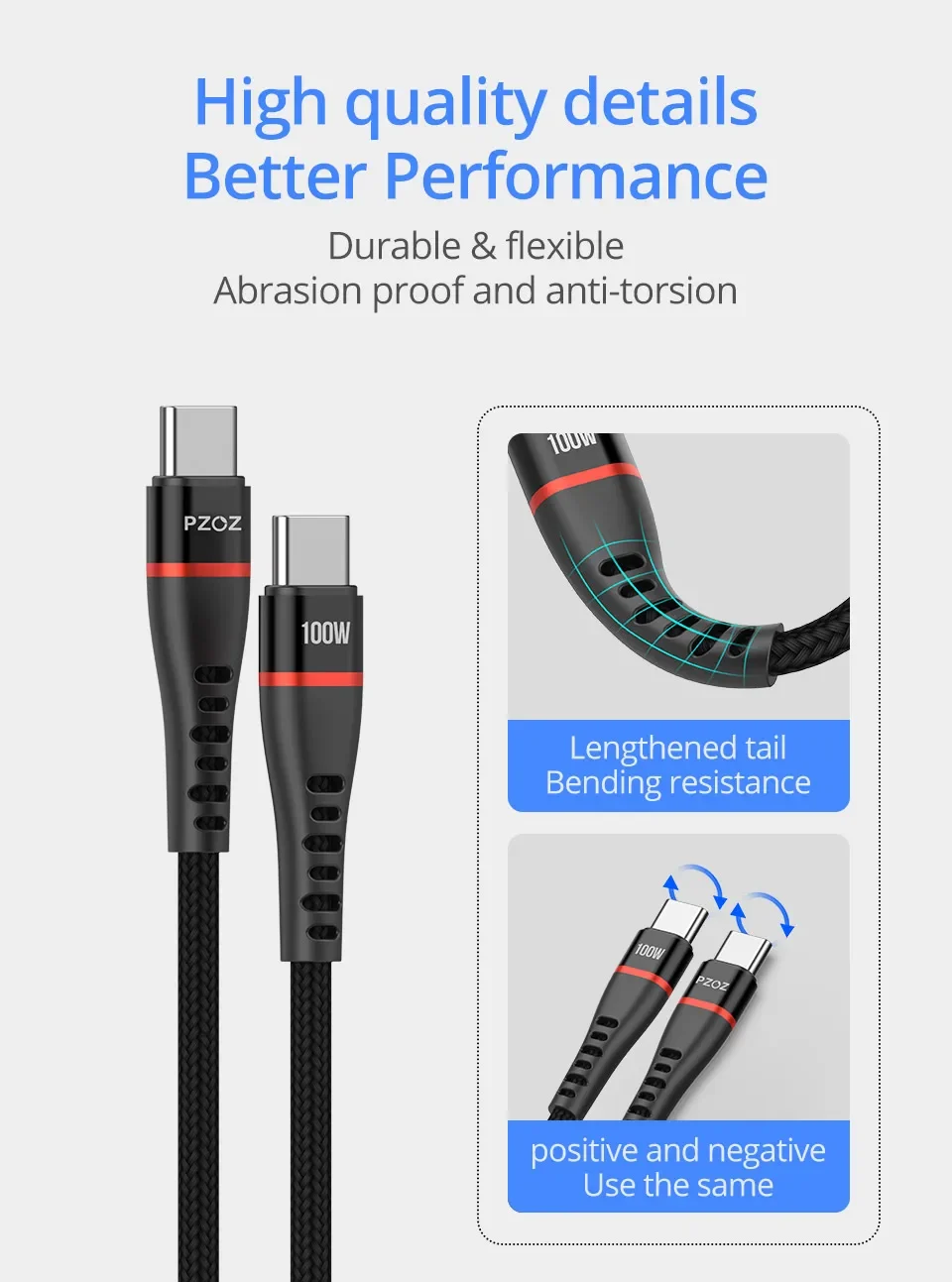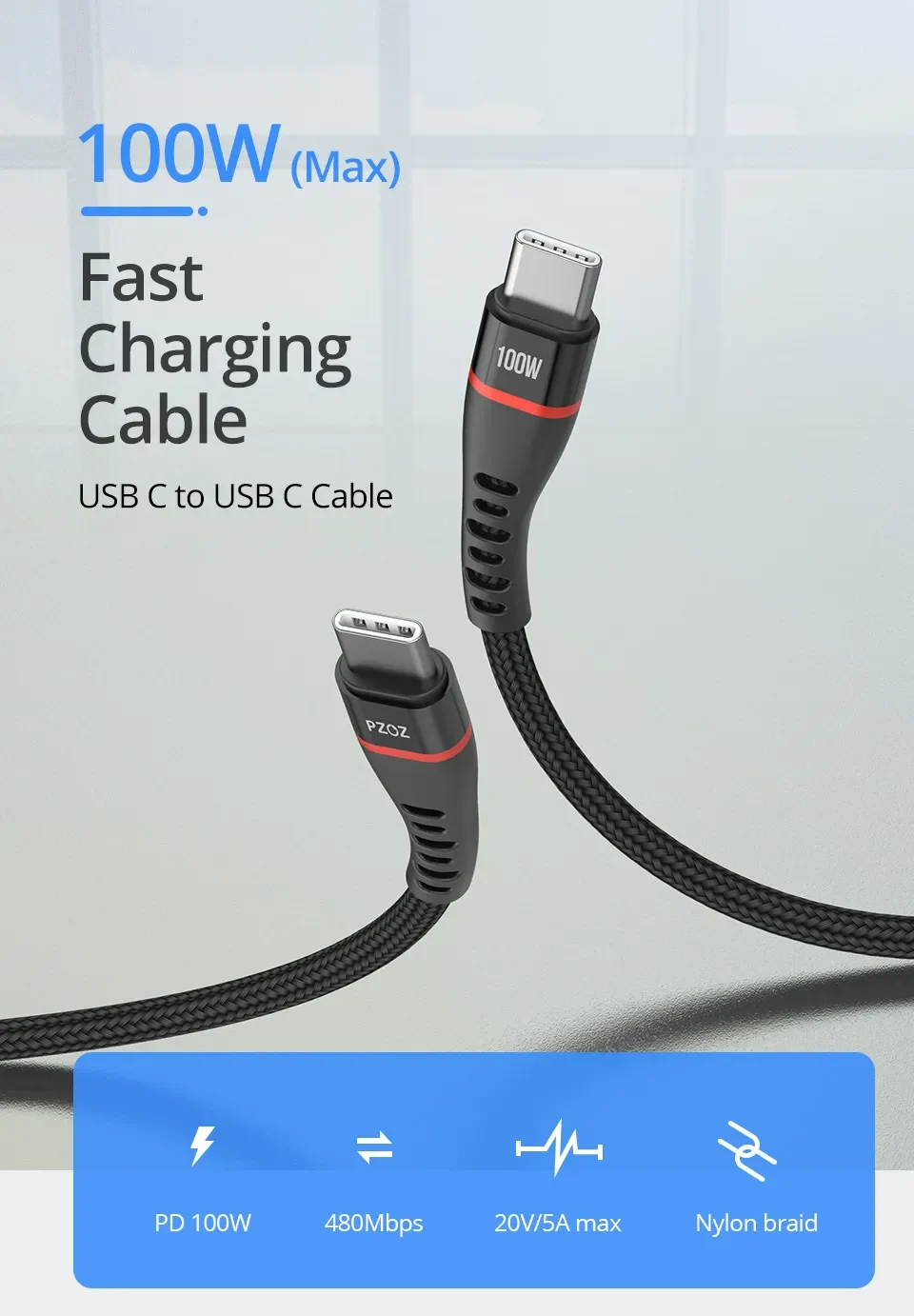 PZOZ 100W USB C to USB Type C Cable PD 5A Fast Charging For iPhone 15 Pro Max MacBook iPad Samsung Xiaomi 60W USBC Charger Cord